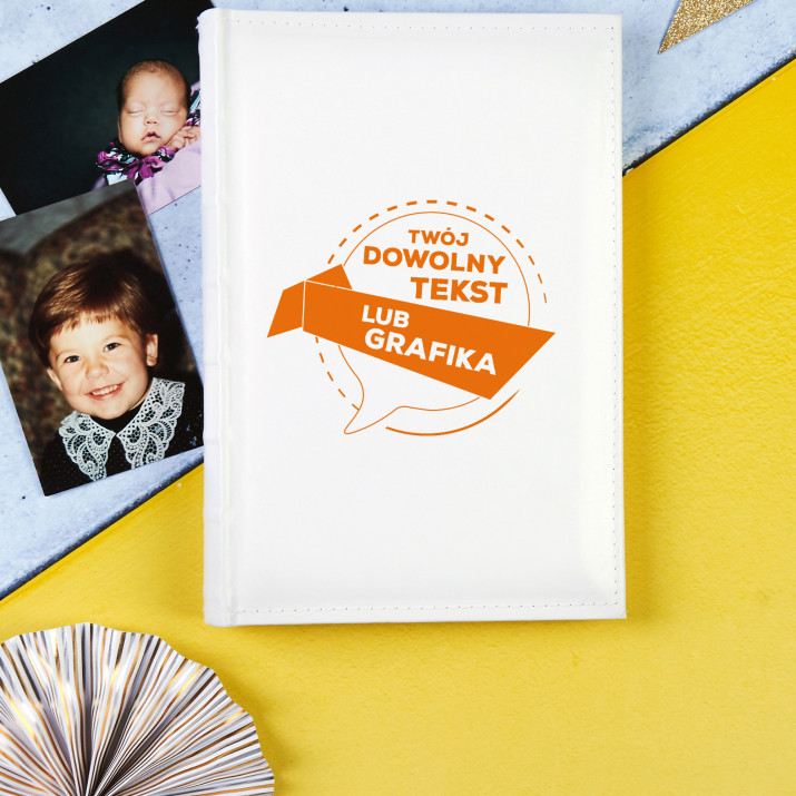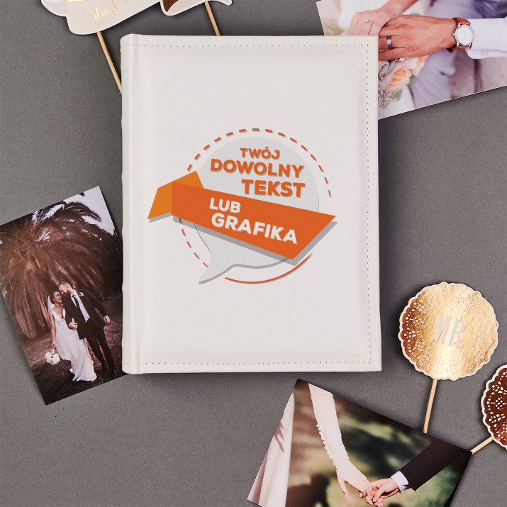 Tradycyjny album na zdjęcia, składający się z 30 kart (60 stron). Skórzana okładka jest lekko błyszcząca. Skórka jest ekologiczna, gładka w dotyku w kolorze białym. Album jest prosty i klasyczny, pasujący do wielu okazji. W środku znajdują się kremowe karty przekładane pergaminem. Album jest zszywany, dzięki czemu mamy gwarancję trwałości. Idealny dla osób szukających albumu na dużą ilość zdjęć. Na jednej stronie można umieścić do 4 zdjęć 10x15. Album pomieści do 240 zdjęć wielkości 10x15. Wymiary: okładka 29x30 cm; karta 27,5x29 cm.NADRUK