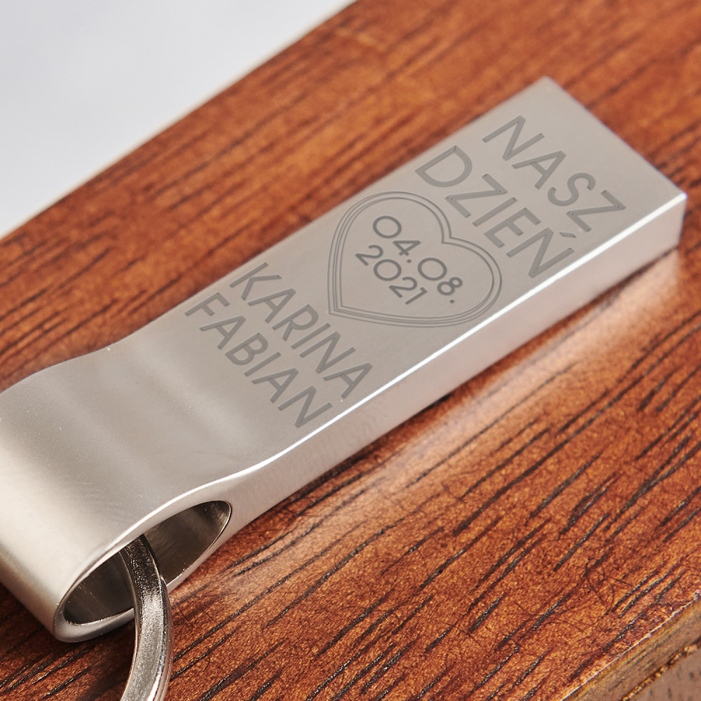 Srebrny pendrive z grawerem to wspaniały pomysł na prezent dla młodej pary! Urządzenie umożliwia przechowywanie zdjęć z ważnych chwil. Spraw, aby piękne momenty z wyjątkowego dnia zawsze były pod ręką.WYKONANIE