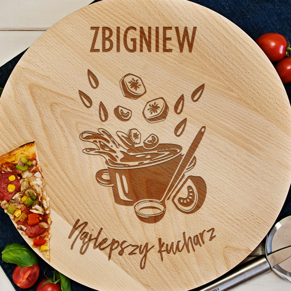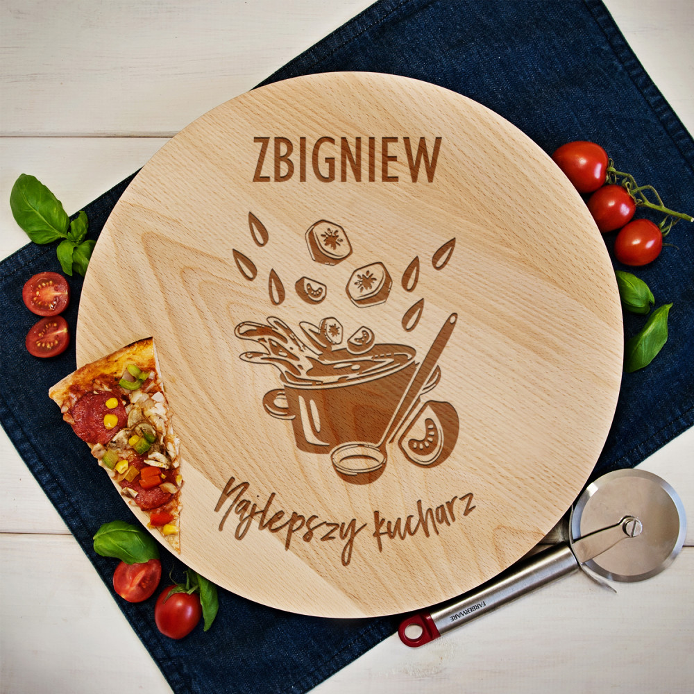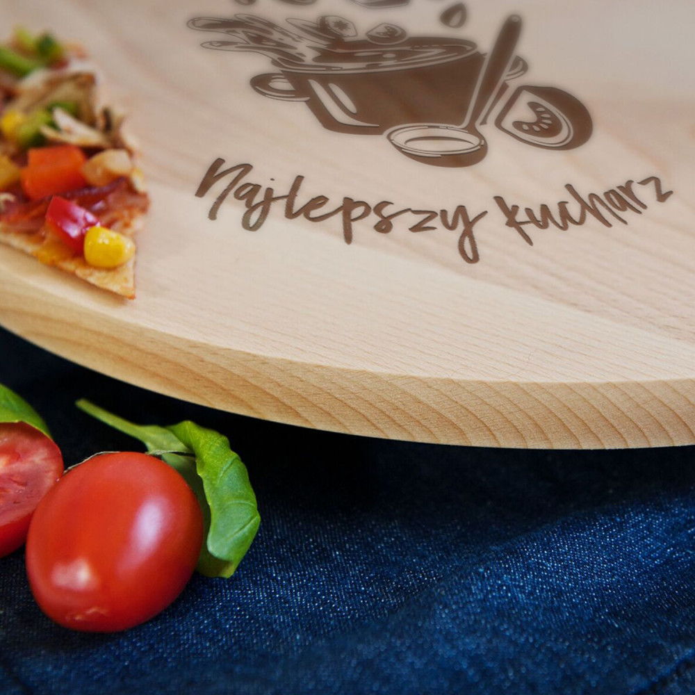 Obrotowa deska drewniana wykonana z drewna bukowego, impregnowana olejem roślinnym. Deska płynnie i lekko się obraca.Jej powierzchnia jest idealnie gładka. Polecamy do podawania pizzy, ciast, owoców i nie tylko.
