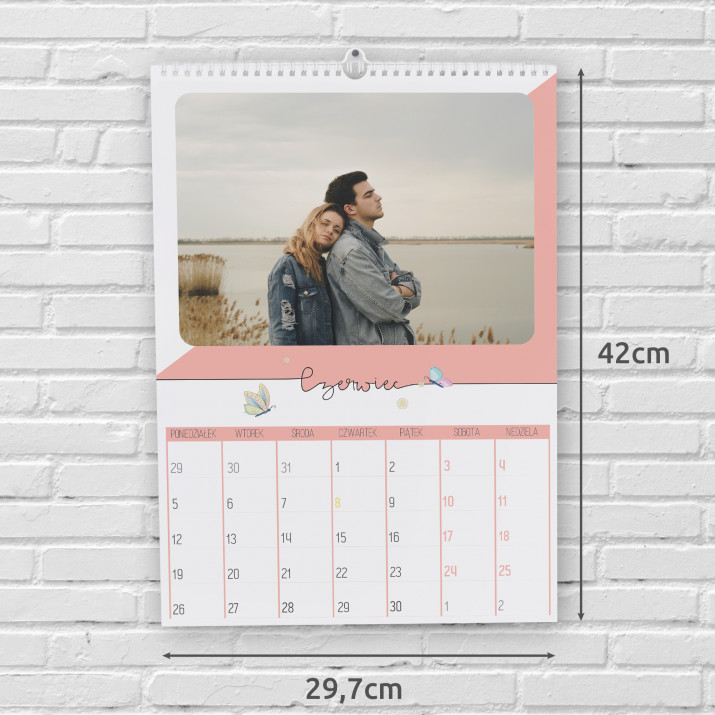 Kalendarz dostępny jest w 3 formatach do wyboru:- A3 (kartki o wymiarach 297 x 420 mm),