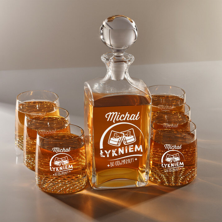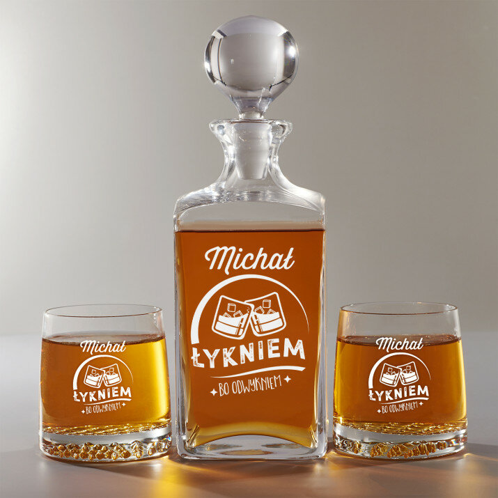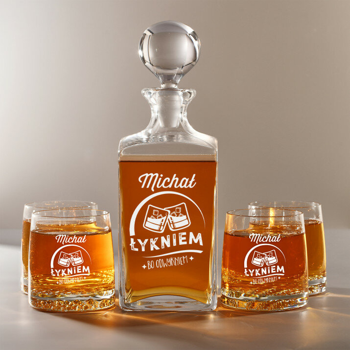 ŁYKNIEM BO ODWYKNIEM - ZESTAW GRAWEROWANA KARAFKA I SZKLANKI DO WHISKY