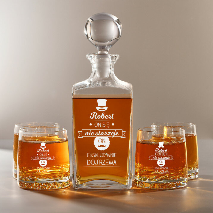 ON SIĘ NIE STARZEJE - ZESTAW GRAWEROWANA KARAFKA I SZKLANKI DO WHISKY
