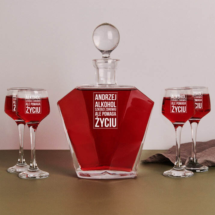 Specjalne alkohole trzymamy na specjalne okazje. Ten wyjątkowy zestaw z karafką i kieliszkami w połączeniu ze specjalnym alkoholem i odpowiednim towarzystwem z pewnością pomoże w życiowych trudnościach.