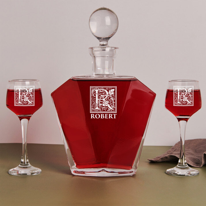 Monogram imię - Zestaw grawerowana karafka i kieliszki