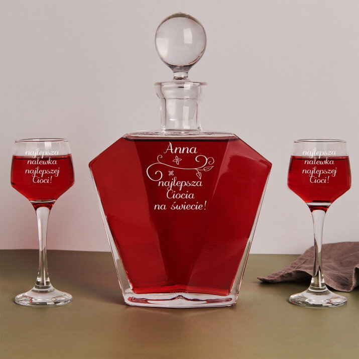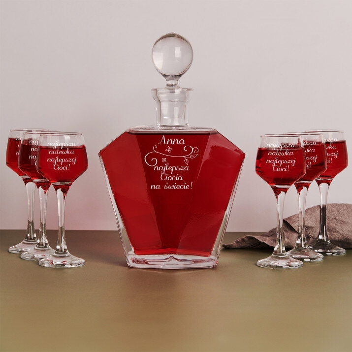 Najlepsza ciocia zasługuj na wyjątkowe prezenty. Ciocia, która robi niepowtarzalne nalewki będzie szczęśliwa gdy otrzyma grawerowany zestaw z karafką i kieliszkami do nalewek i likierów.
