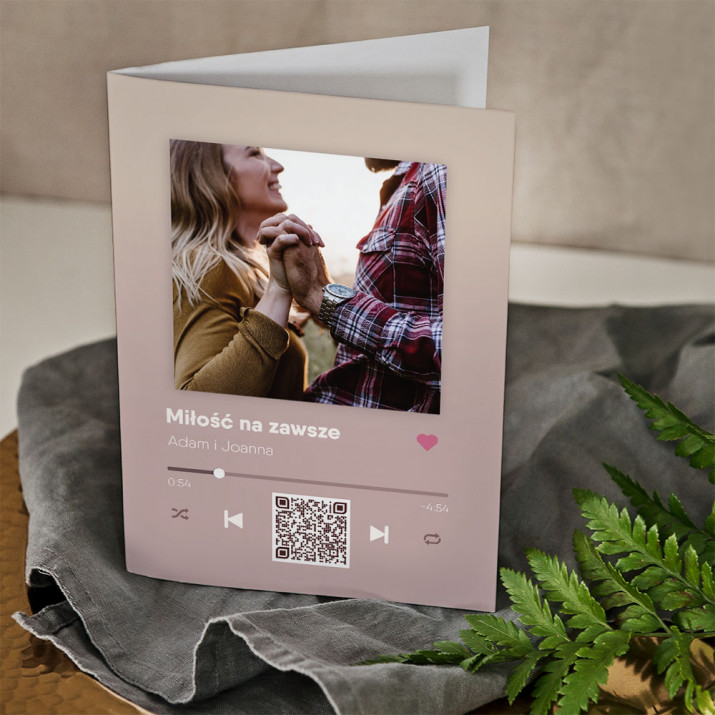 Kartka z życzeniami 'Twoja piosenka Spotify' z kodem QR to innowacyjny sposób na przekazanie życzeń. Bardzo pomysłowy prezent!
