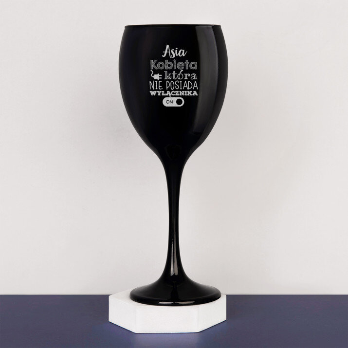 Tej dziewczyny nie zatrzyma żadna siła! Ona po prostu nie ma wyłącznika. Ale to nie znaczy, że ma też nie mieć chwili na oddech i czas dla siebie. Piękny, personalizowany kieliszek do wina z zabawnym grawerem może być świetnym powodem, żeby zrobić sobie malutką przerwę na relaks z lampką wina.WYKONANIE