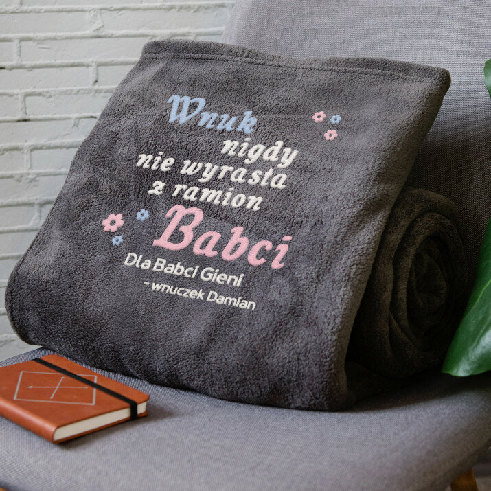 Prezent na Dzień Babci, który w piękny sposób pokaże jej, jak wiele dla Ciebie znaczy. Babcia - koc z haftem to piękny prezent, który bardzo ją wzruszy i już zawsze będzie przy niej. Jesteśmy pewni, że z dumą będzie go pokazywać każdemu, kto ją odwiedzi.
