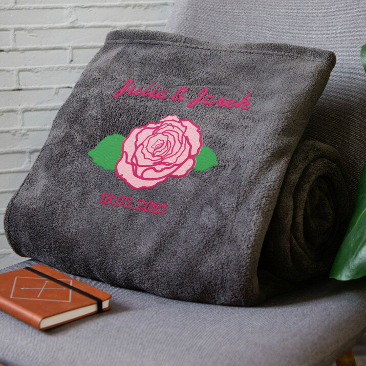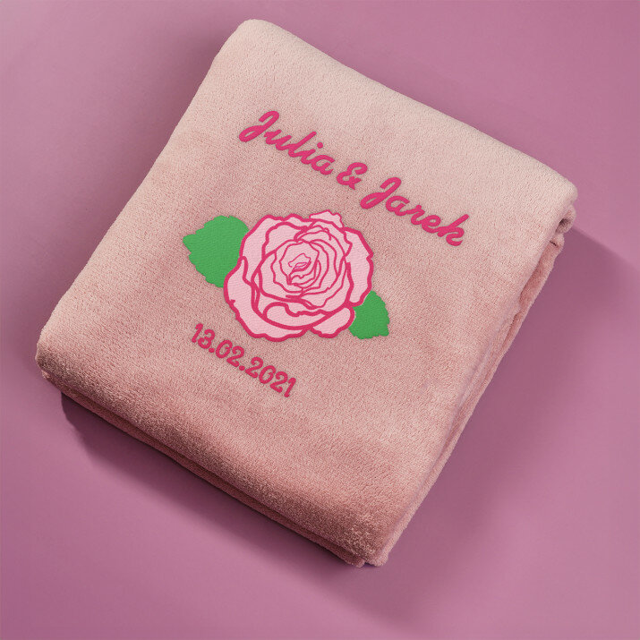 charakteryzuje się niepowtarzalną puszystością i miękkością, ozdobiony jednym z naszych personalizowanych haftowanych wzorów.