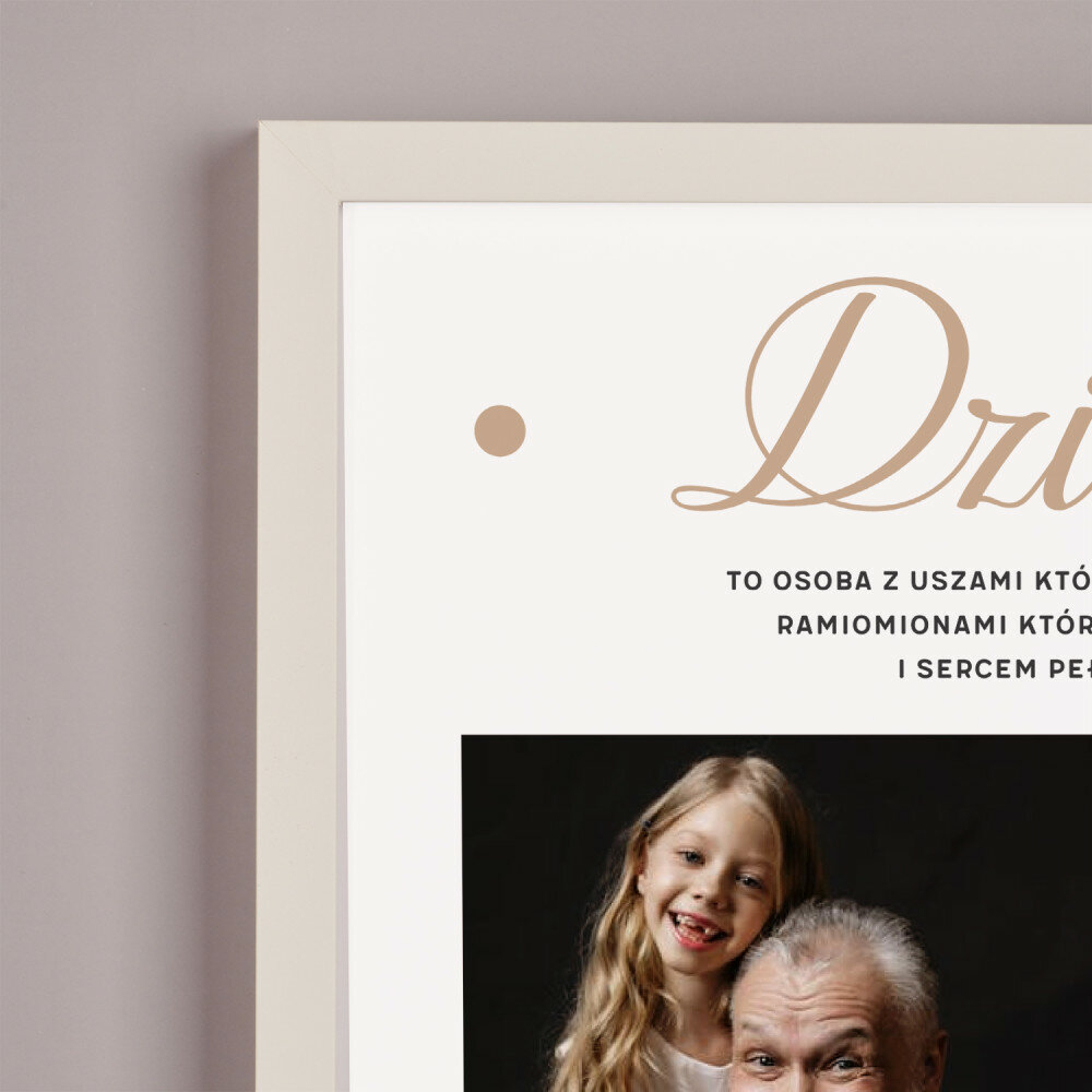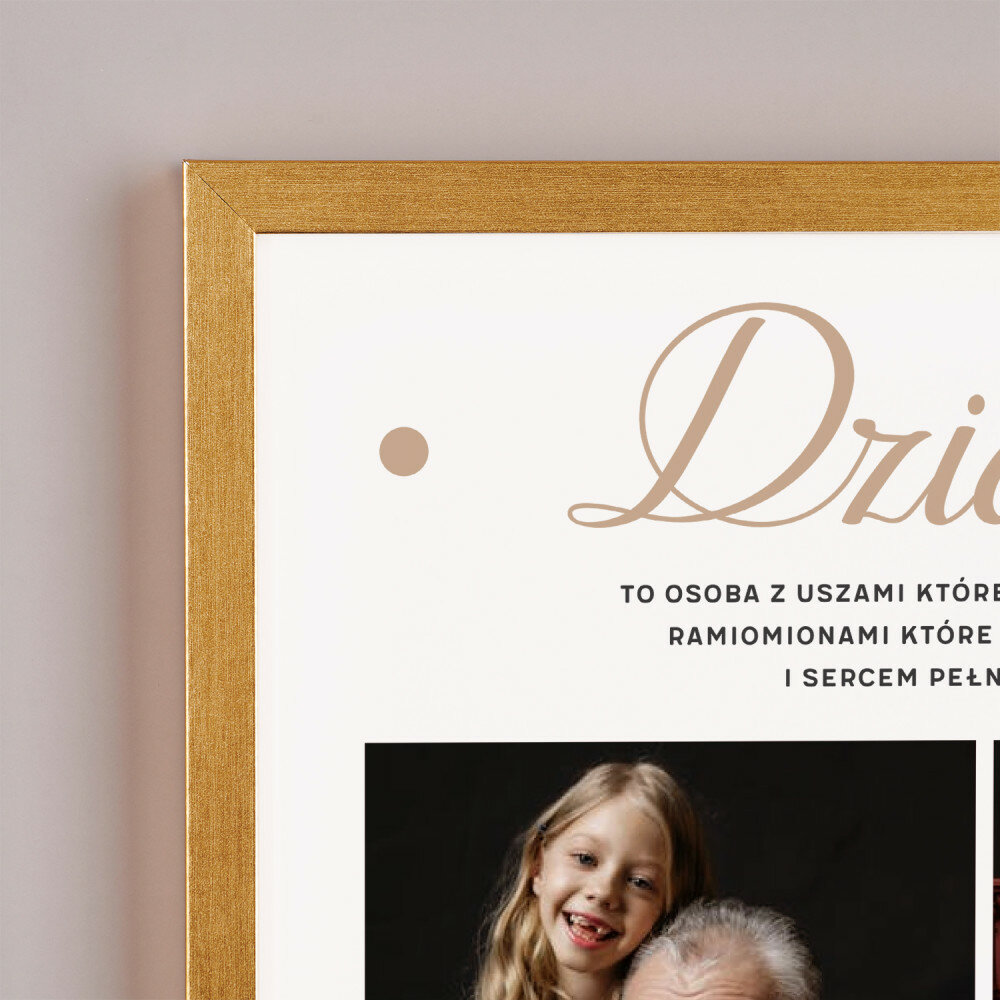 • wydruk plakatu na papierze fotograficznym obramowany w ramkę 30 x 40 cm w jednym z trzech kolorów do wyboru: czarnym, białym lub złotym