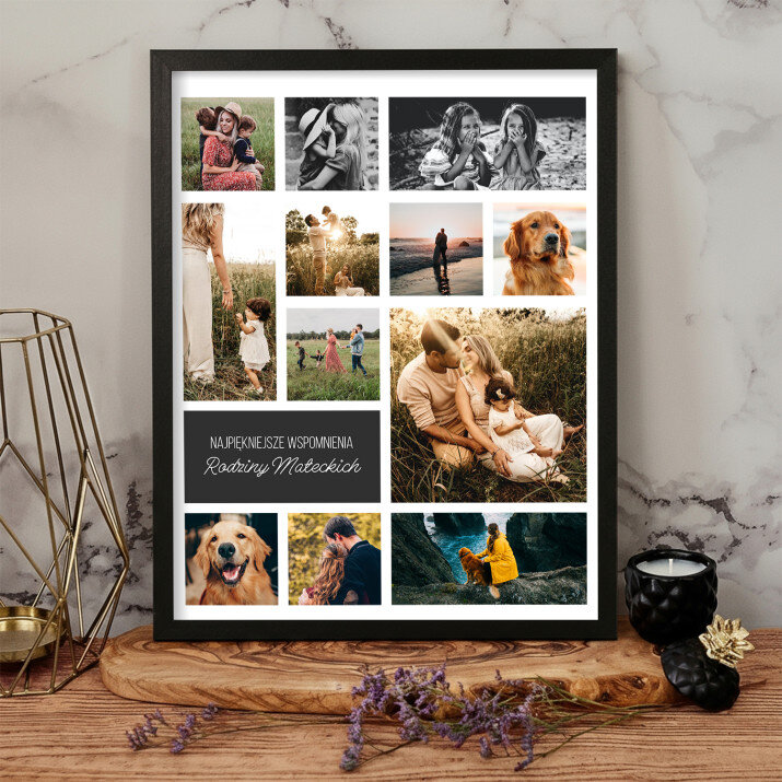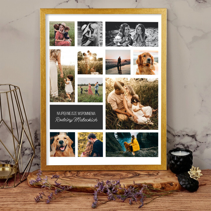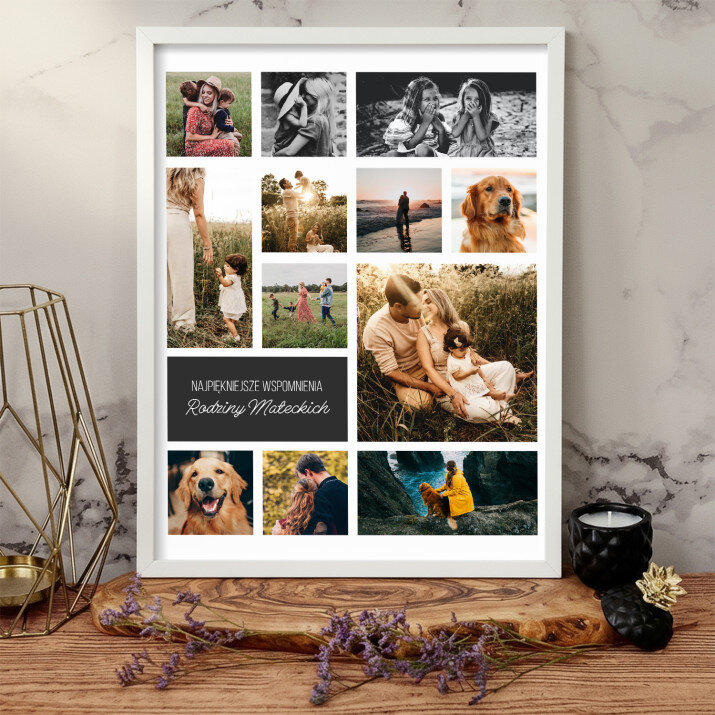 Piękna kompozycja Twoich zdjęć z kilkoma słowami prosto z serca oraz podpisami. Idealny prezent dla tych, z którymi łączy Cię mnóstwo wspomnień. Wystarczy wybrać ulubione fotografie najważniejszych dla Was chwil, a powstanie pamiątka, która zostanie z obdarowaną osobą na zawsze. To również niezwykle oryginalna i efektowna dekoracja do mieszkania.WYKONANIE