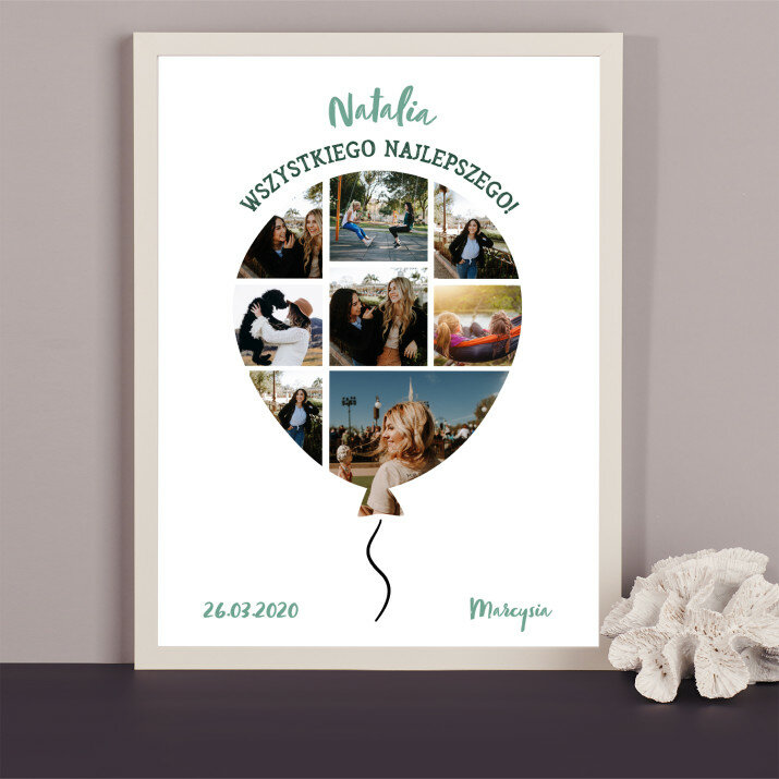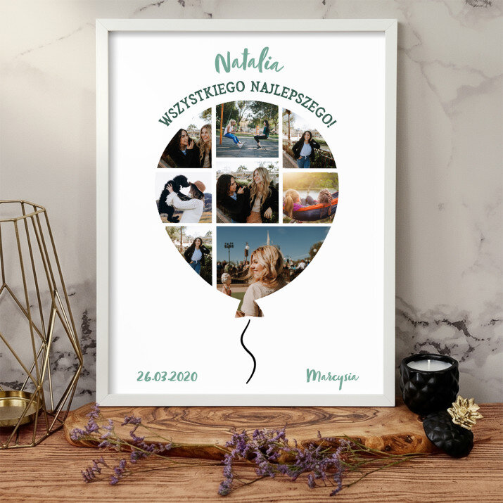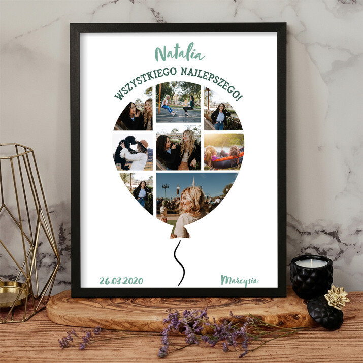 Piękna kompozycja Twoich zdjęć z kilkoma słowami prosto z serca oraz podpisami. Idealny prezent dla tych, z którymi łączy Cię mnóstwo wspomnień. Wystarczy wybrać ulubione fotografie najważniejszych dla Was chwil, a powstanie pamiątka, która zostanie z obdarowaną osobą na zawsze. To również niezwykle oryginalna i efektowna dekoracja do mieszkania.WYKONANIE