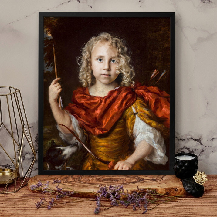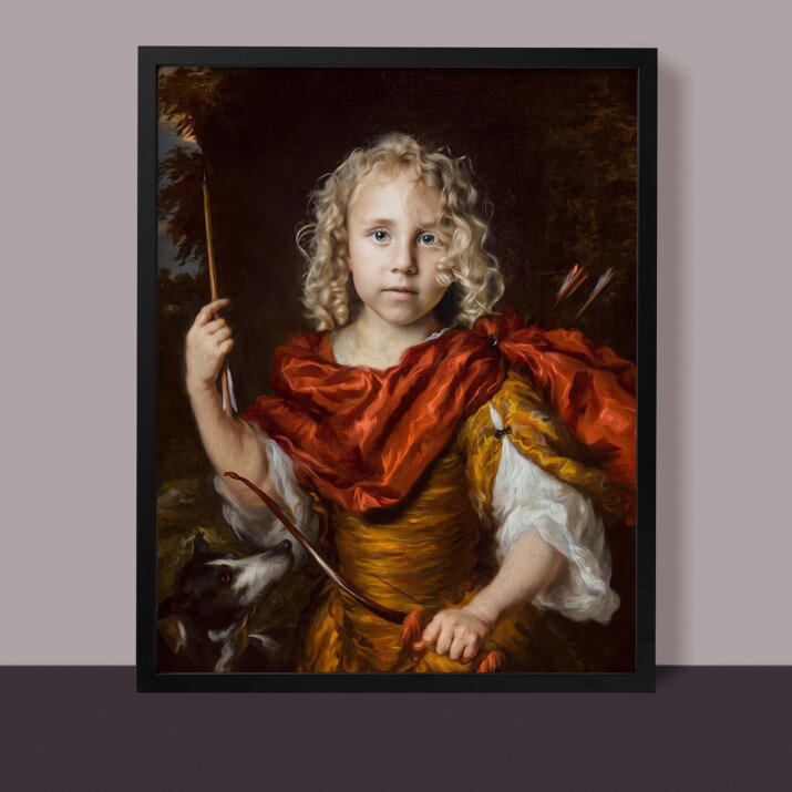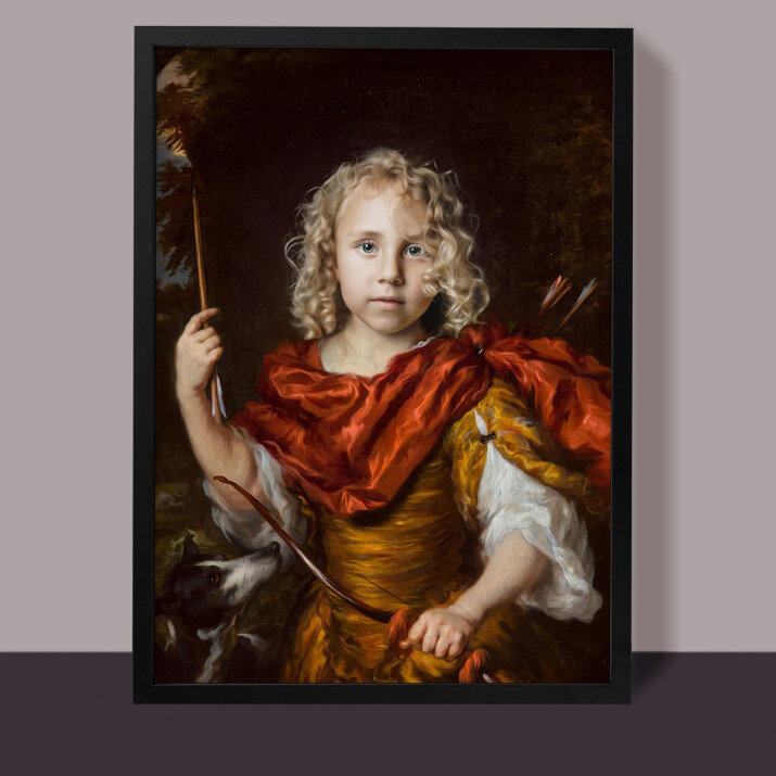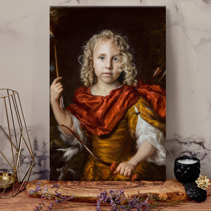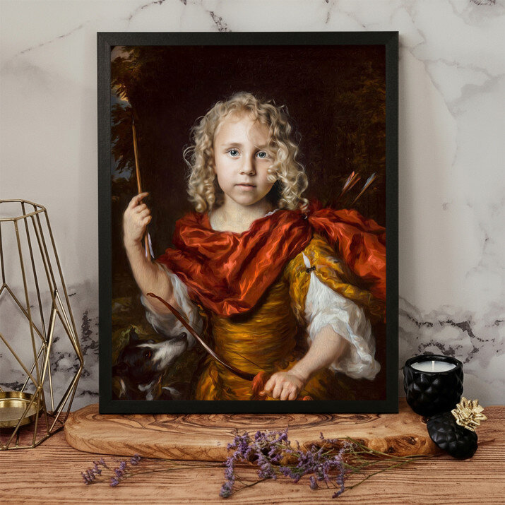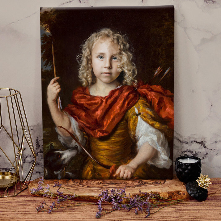 Mały łucznik na tym portrecie wygląda jak bohater z bajki. Nasz maluch jest zachwycony!