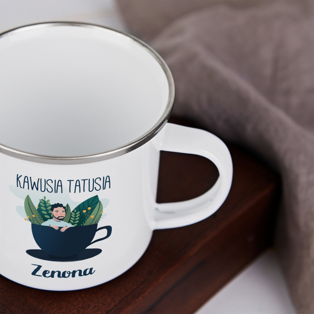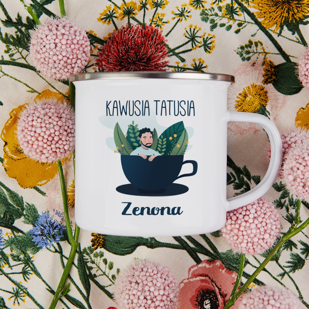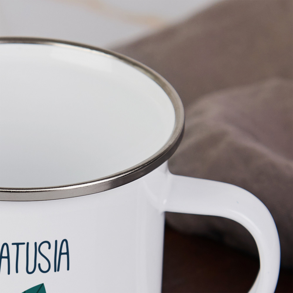 Stalowy kubek emaliowany z kolorowym nadrukiem. Wysoka jakość wykonania oraz eleganckie wykończenie sprawiają, że świetnie sprawdzi się zarówno w podróży, jak i w domowym zaciszu. Kubek dostępny jest w kolorze białym ze srebrną obwódką.Wymiary: pojemność ok. 250 ml, średnica 8 cm, wysokość 8 cm.