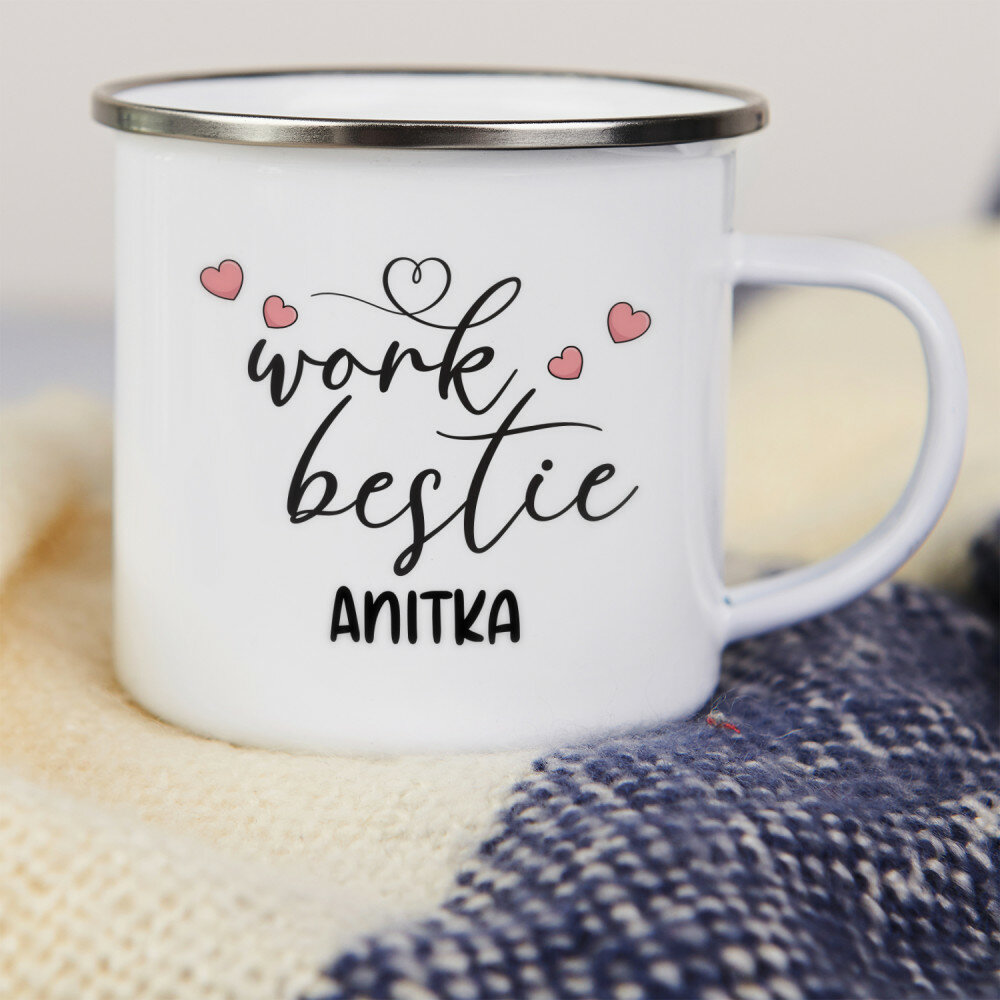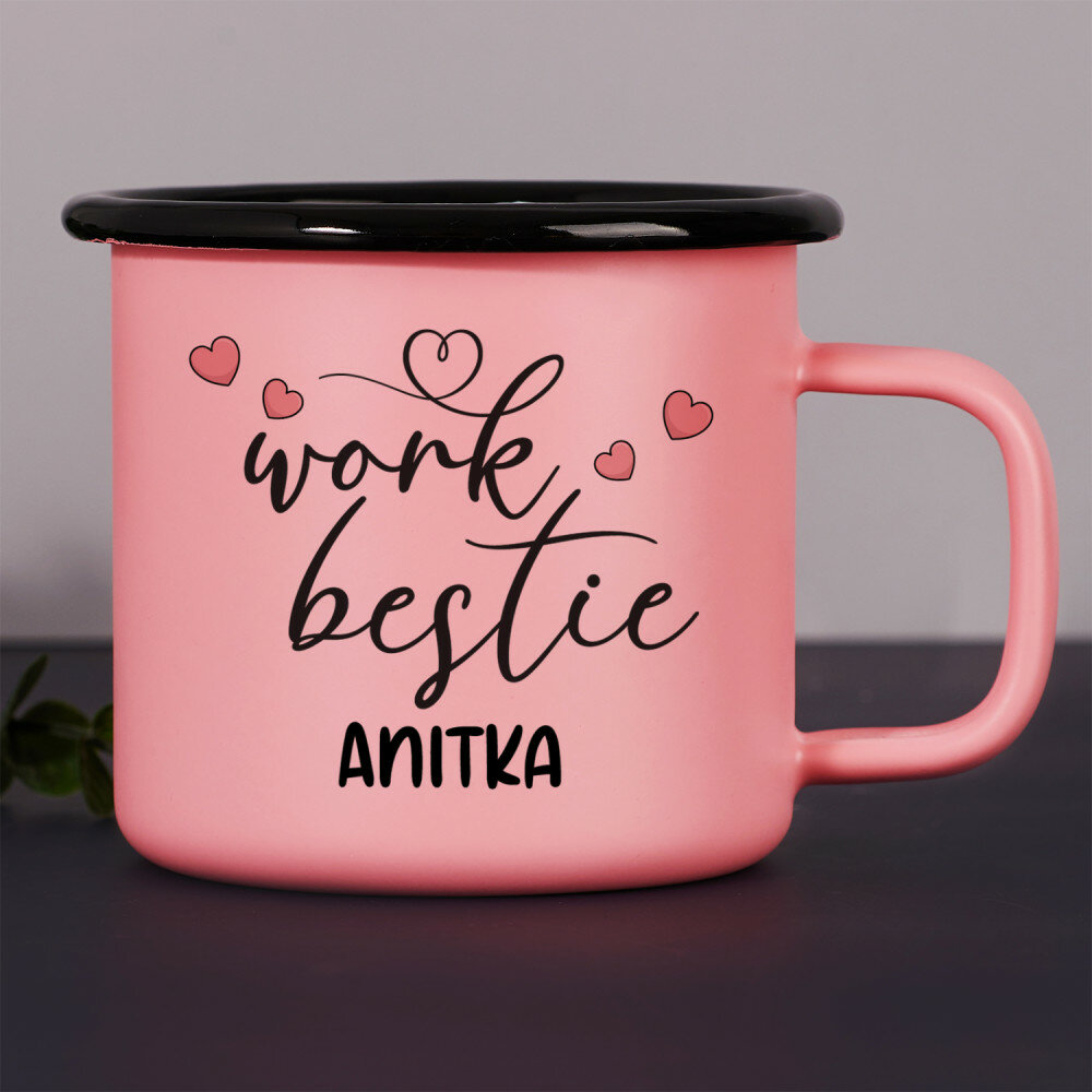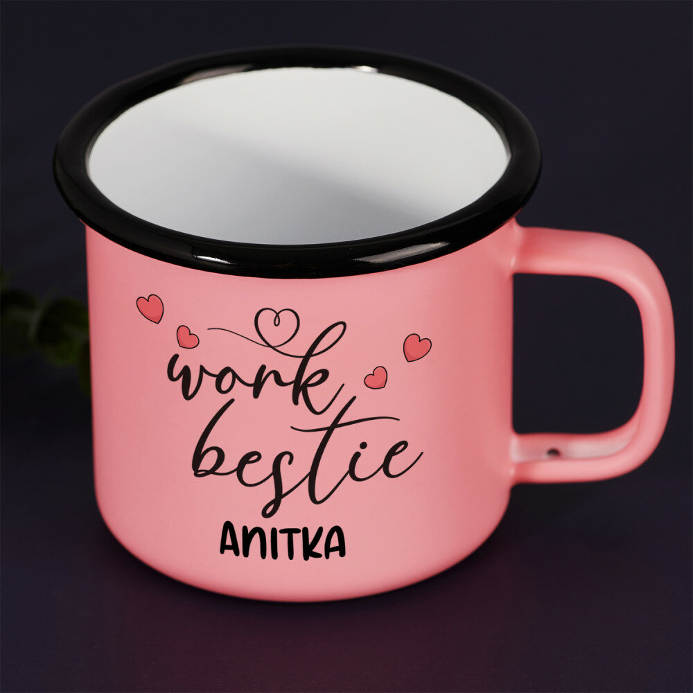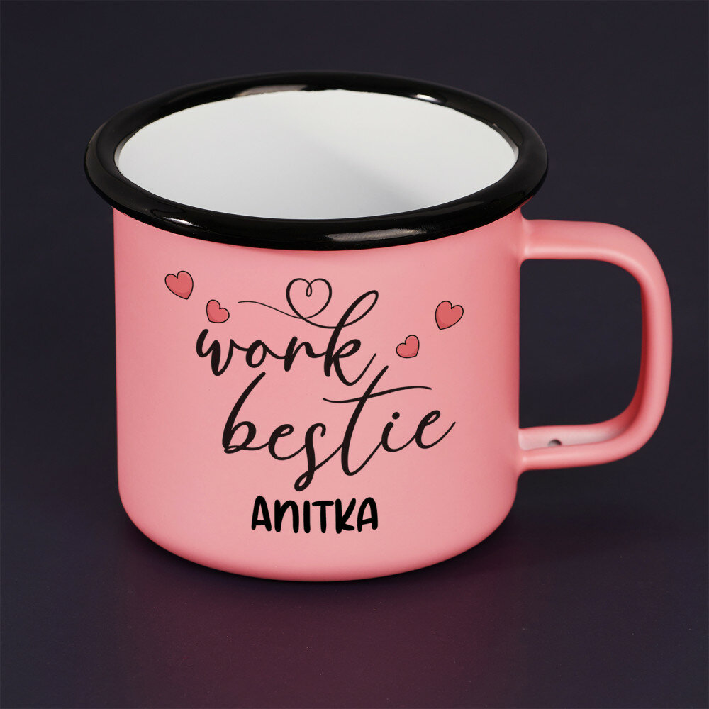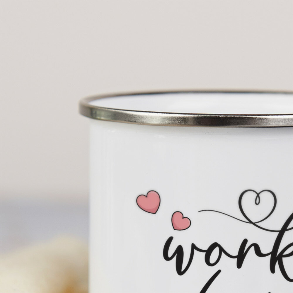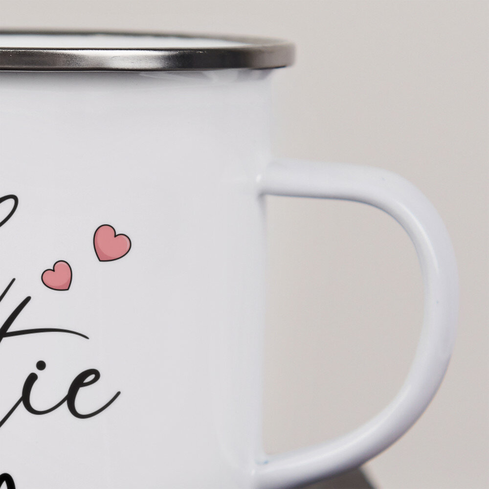 Stalowy kubek emaliowany z kolorowym nadrukiem. Wysoka jakość wykonania oraz eleganckie wykończenie sprawiają, że świetnie sprawdzi się zarówno w podróży, jak i w domowym zaciszu. Kubek dostępny jest w kolorze białym ze srebrną obwódką oraz w kolorze różowym o matowym wykończeniu z czarną obwódką.Wymiary: pojemność ok. 300 ml, średnica 8 cm, wysokość 8 cm