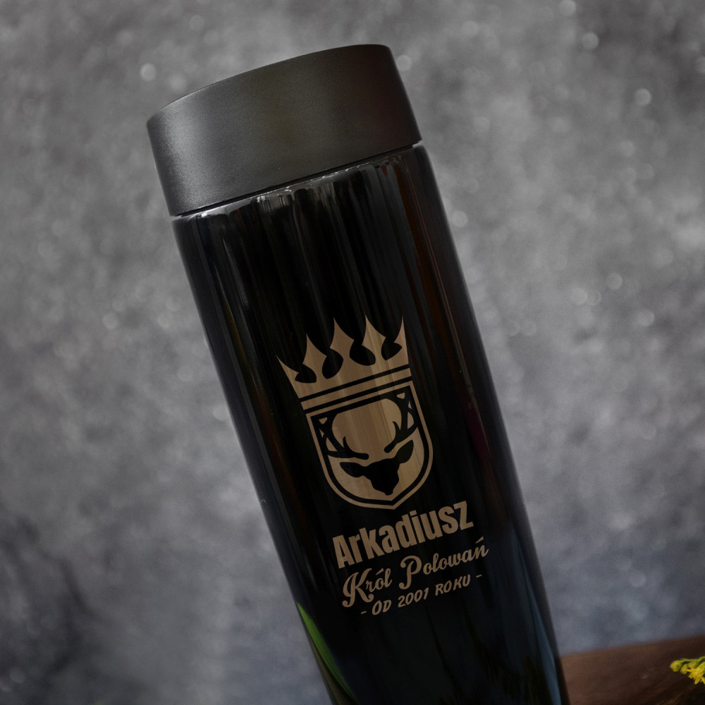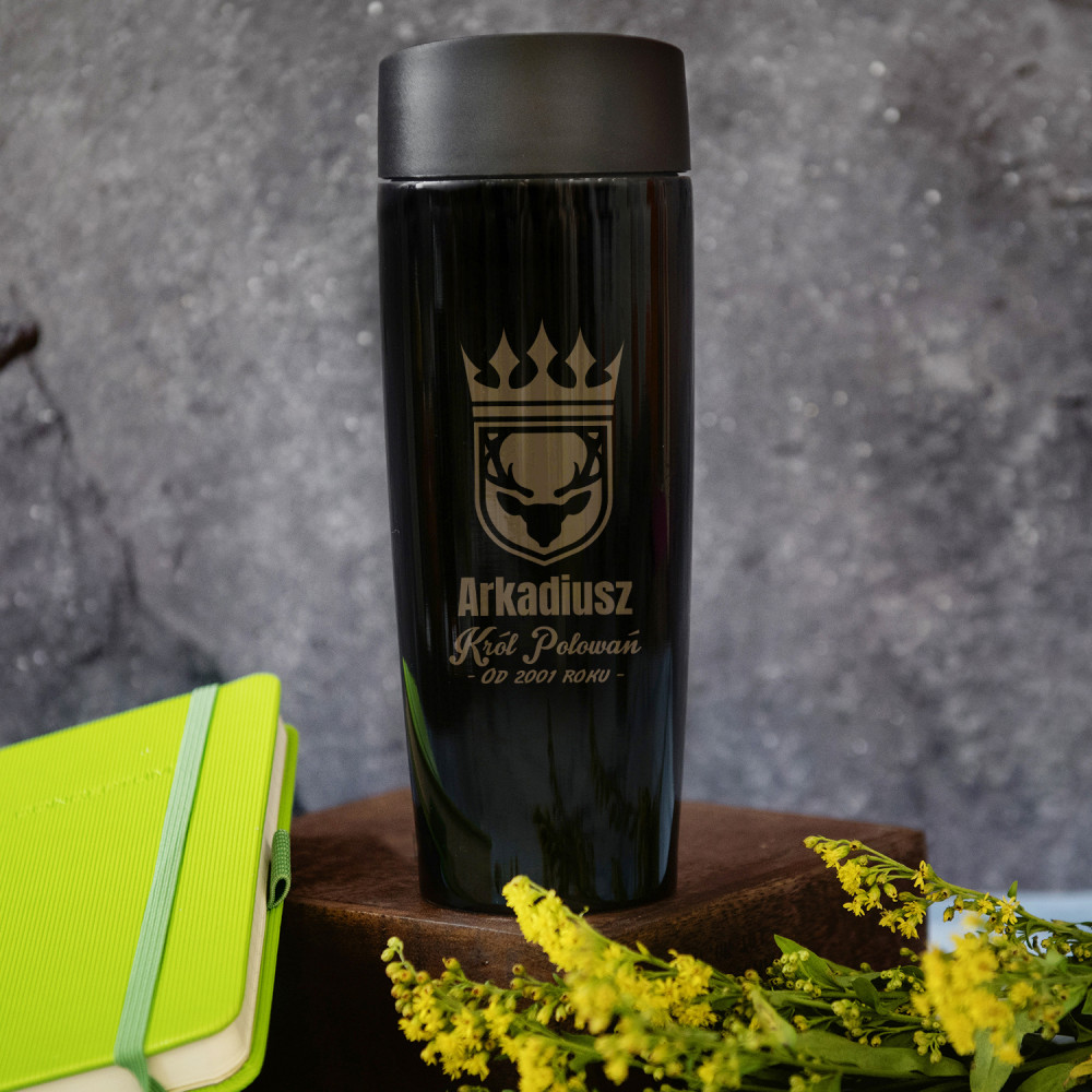 Od dziś, kubek termiczny, stworzony specjalnie dla Twojego wyśmienitego łowcy będzie towarzyszyć mu przy każdym najgorętszym pościgu. A poza polem bitwy, dyskretnie poinformuje wszystkich zainteresowanych, że mają do czynienia z prawdziwym Królem Polowań.WYKONANIE