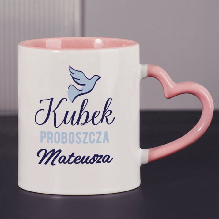 Dostępne są również kubki z uszkiem w kształcie serca i różowym środkiem, o pojemności 330 ml