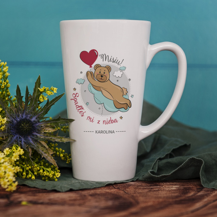 Oj, taki upadek z nieba musiał być nie tylko bolesny, ale także wyczerpujący. Wiemy jednak, co na pewno postawi na nogi Twojego Misia po takim locie - pyszna, aromatyczna kawa pita z romantycznego kubeczka podarowanego przez kochającą kobietę!Wykonanie