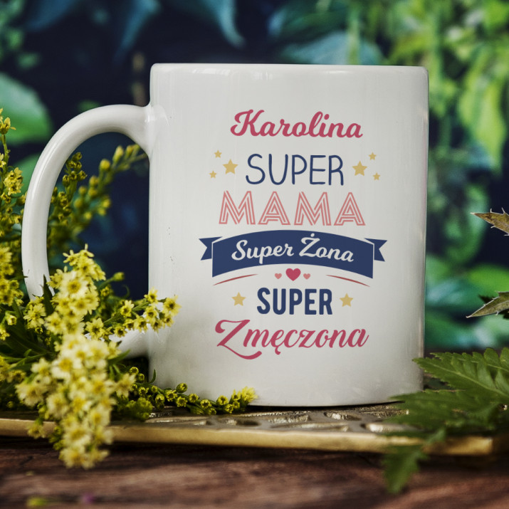 SUPER MAMA, SUPER ŻONA, SUPER ZMĘCZONA - KUBEK PERSONALIZOWANY