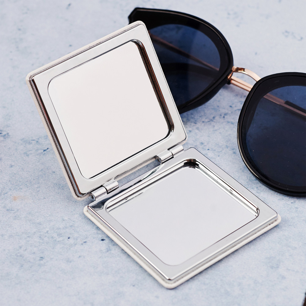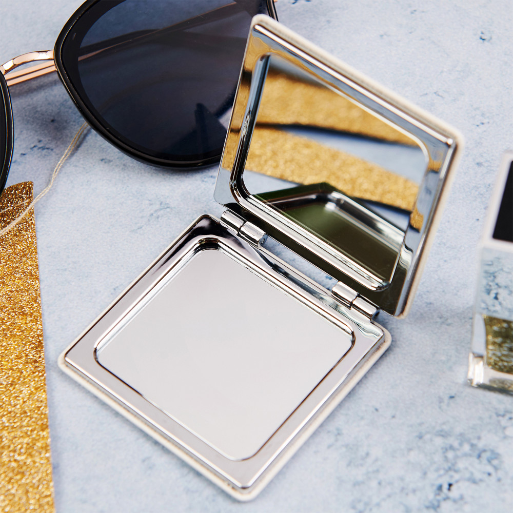 Kieszonkowe, nietłukące się lusterko wykonane z polerowanego metalu, pokryte