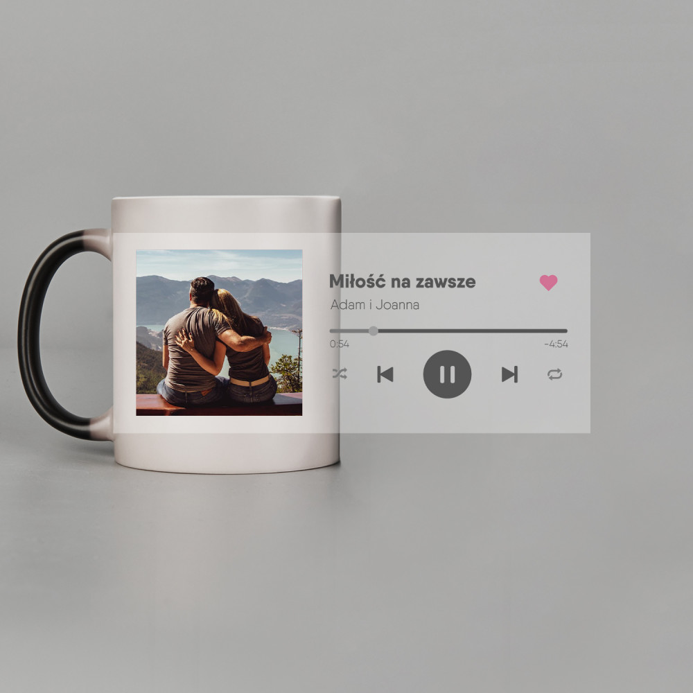 Jeśli chcesz w kreatywny sposób przekazać Twojej sympatii to, co do niej czujesz, zdecyduj się na nasz magiczny kubek. Motyw piosenki dopełnij, dodając Wasze ulubione zdjęcie i tytuł wybranej melodii.