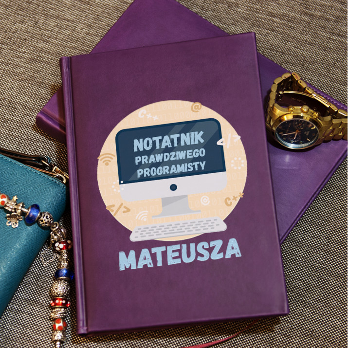 Prezent dla mężczyzny. Personalizowany notatnik z nadrukiem w formacie A5 to praktyczny prezent, który możesz podarować bliskiemu Twemu sercu programiście na każdą okazję.