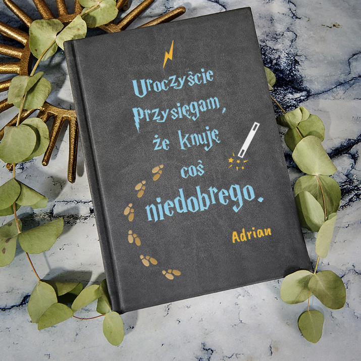 Nasze graficzne zaklęcie spowodowało, że teraz sam możesz poczuć się jak uczeń najsłynniejszej Szkoły Magii i Czarodziejstwa. Wystarczy, że weźmiesz do ręki swoją różdżkę (tj. ulubiony długopis), a nasz notatnik stanie się Twoją własną wersją magicznej Mapy Huncwotów!