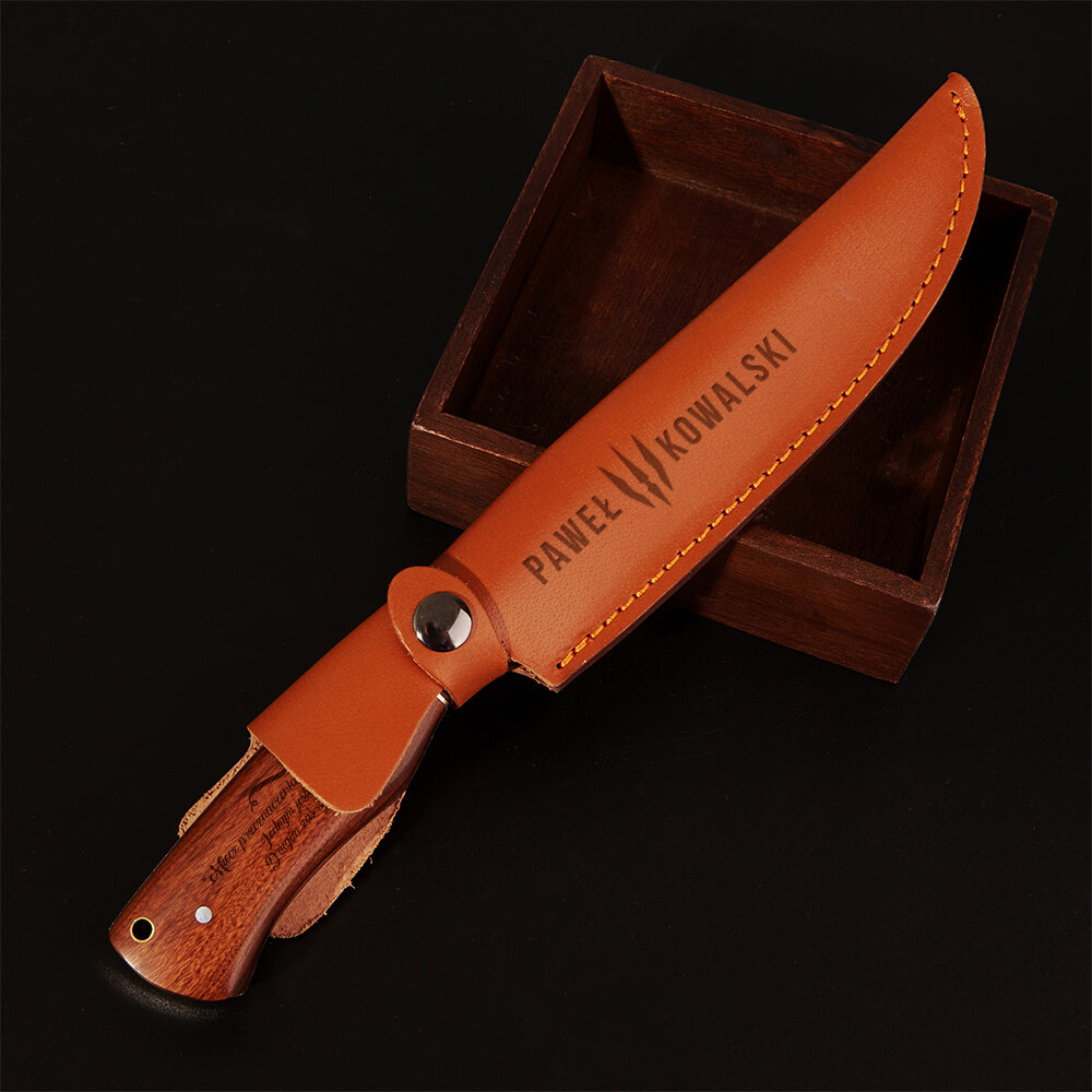 Prawdziwy miłośnik noży będzie zachwycony niezwykłym cytatem wygrawerowanym na dopasowanym etui oraz jego imieniem i nazwiskiem na rękojeści. To dobry prezent na każdą okazję.