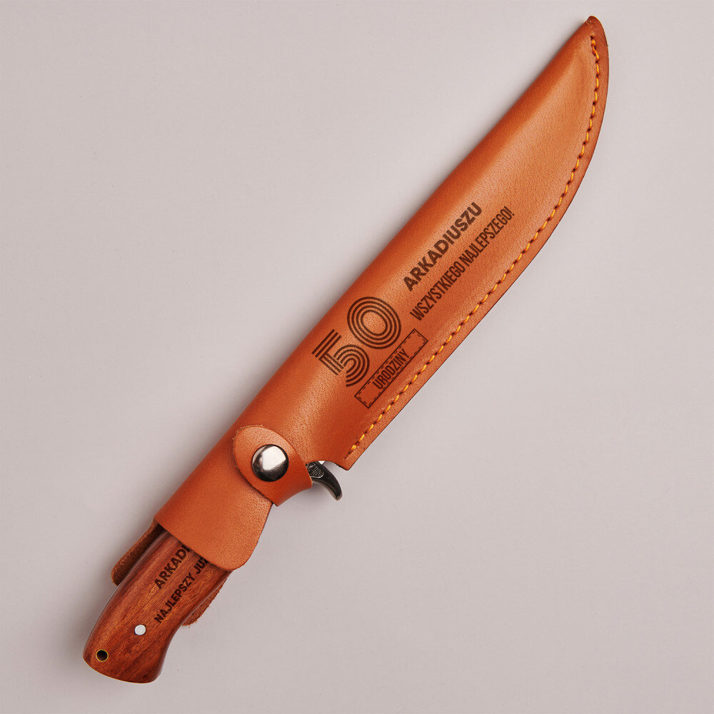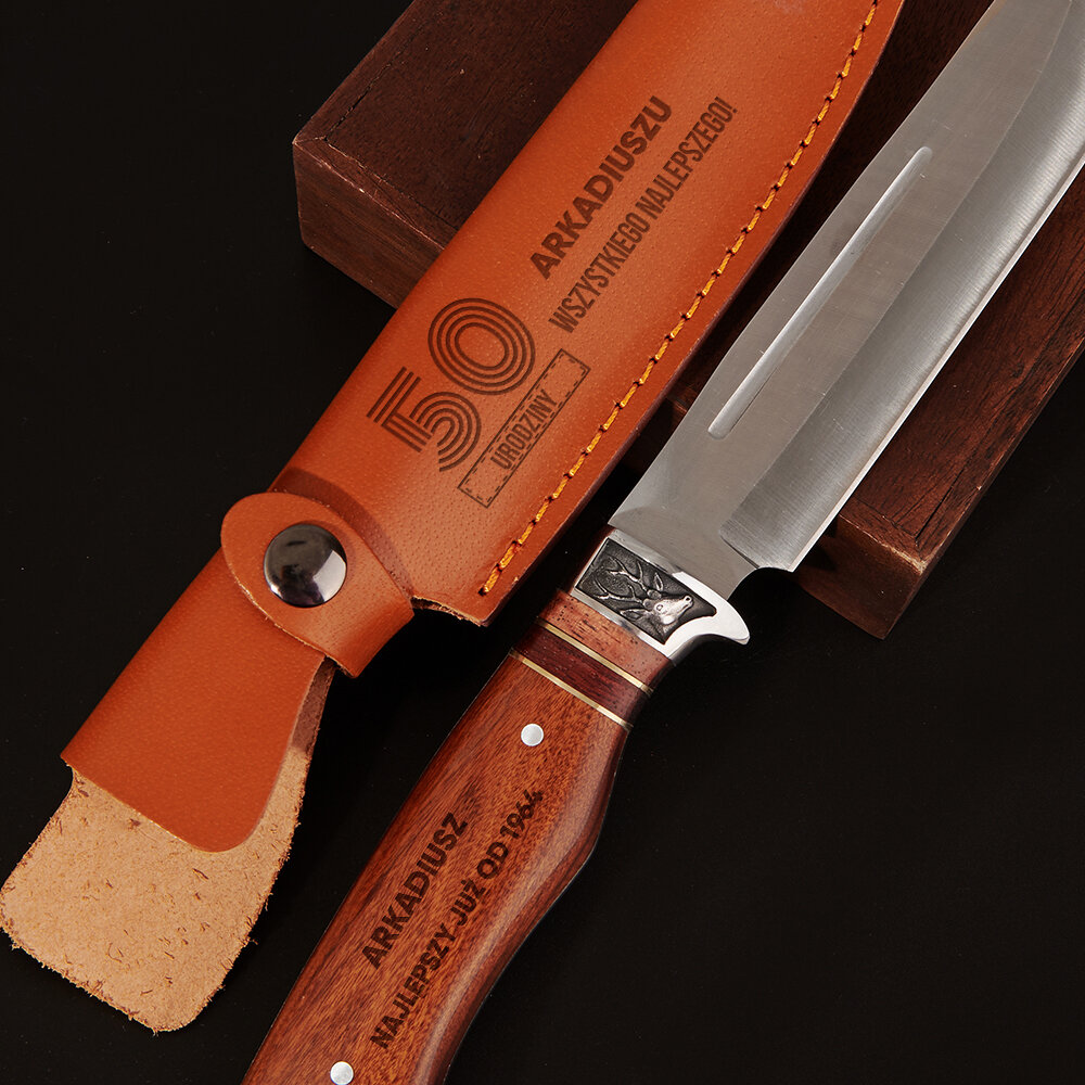 Szukasz niebanalnego urodzinowego prezentu dla mężczyzny? Nóż myśliwski z wygrawerowanym imieniem i najlepszymi życzeniami dla jubilata to praktyczny prezent jak i pamiątka na lata.