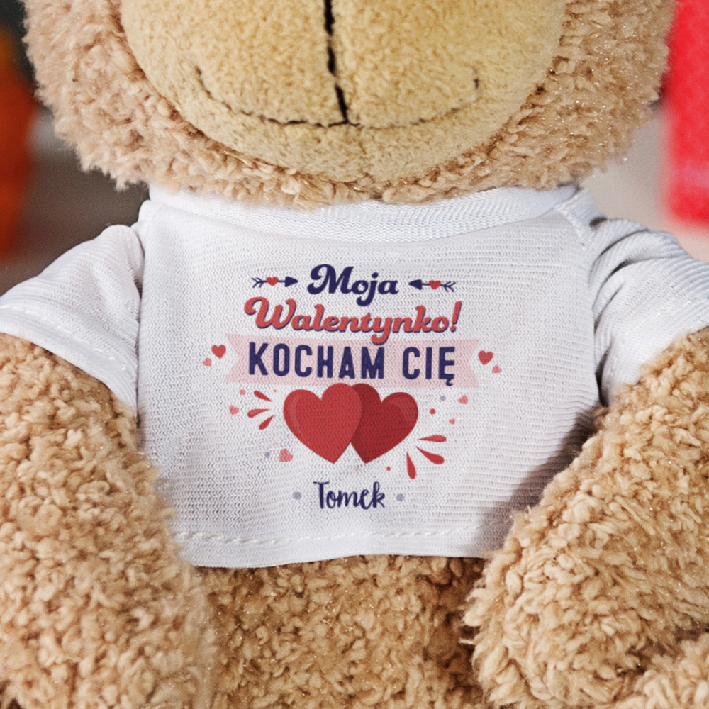 Pewnie każdy, nawet ten, kto ma niewielki staż w związku, już przynajmniej raz kupował ukochanej jakąś maskotkę. Nie ma się co dziwić, to uroczy podarunek, który zawsze się sprawdza. My proponujemy coś więcej - nasz pluszaczek ubrany jest w koszulkę, na której znajdzie się personalizowany nadruk specjalnie dla Twojej wybranki.Wykonanie