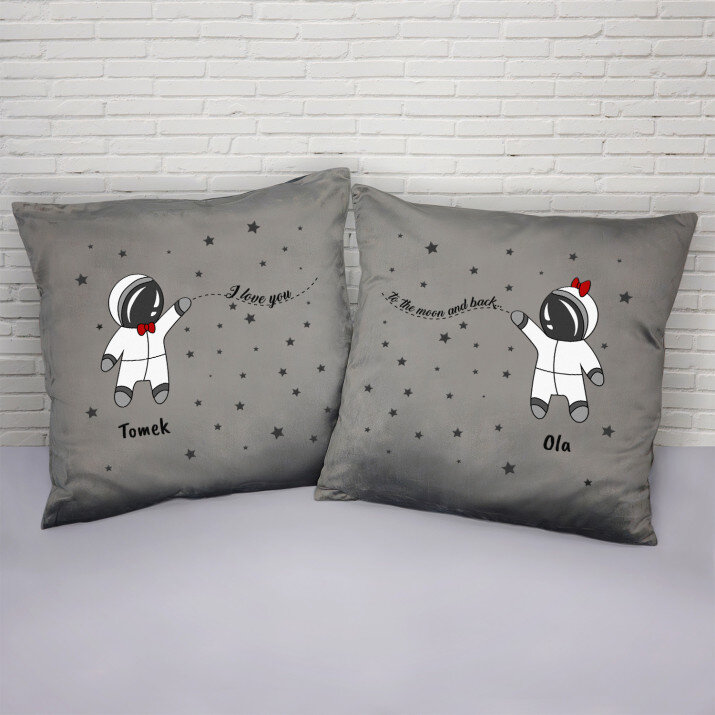 Ten zestaw to strzał w dziesiątkę! Solidne wykonanie i wzór To the moon and back sprawiają, że te poduszki są niezwykle romantyczne.