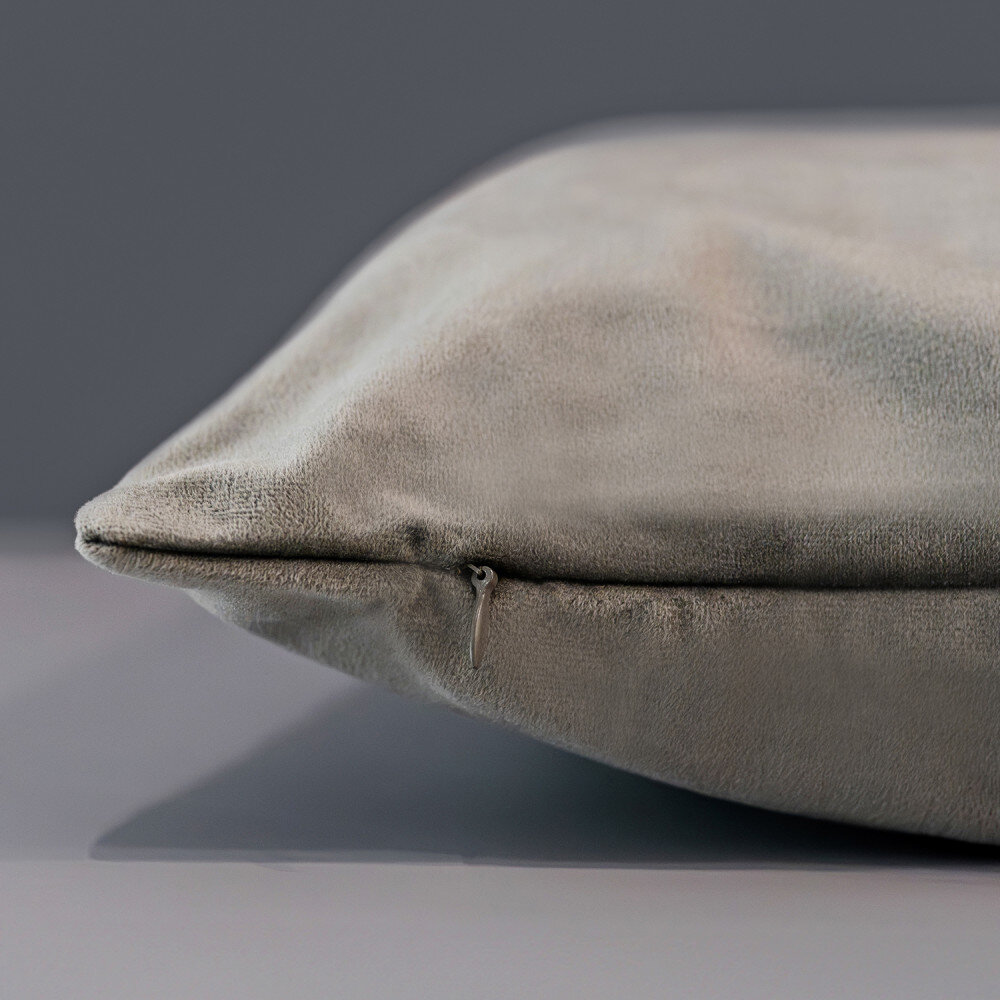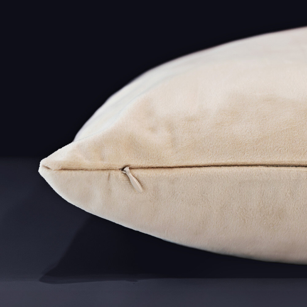 Poduszka o wymiarach 50 x 50 cm i grubości 13/15 cm. Posiada miękkie i sprężyste wypełnienie z włókna poliestrowego w kolorze białym. Poduszka dopasowuje się do kształtów ciała i szybko powraca do stanu naturalnego. Wypełnienie jest wolne od alergenów i bezzapachowe. Poszewka wykonana z miłej tkaniny nie blaknie i nie przeciera się. Do wyboru są dwie wersje kolorystyczne: szary i beżowy. Poszewka posiada zamek błyskawiczny.W celu rozprostowania zagnieceń poszewkę na poduszkę należy prasować przez pergamin.