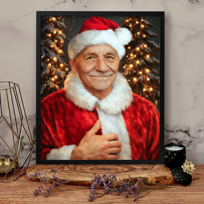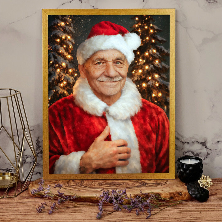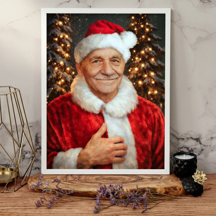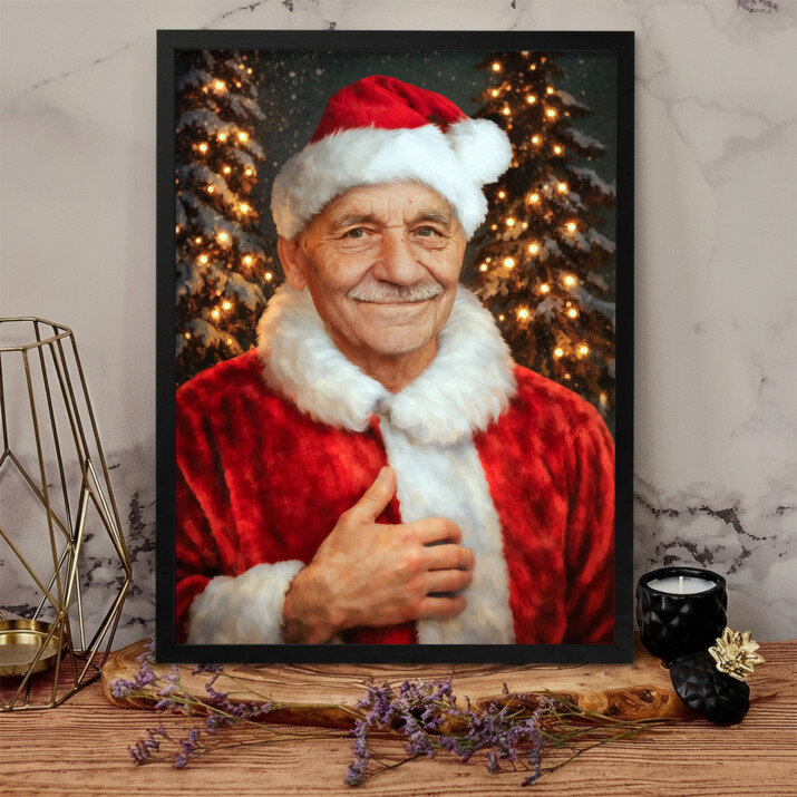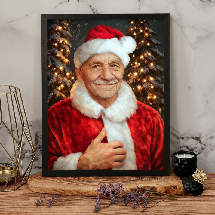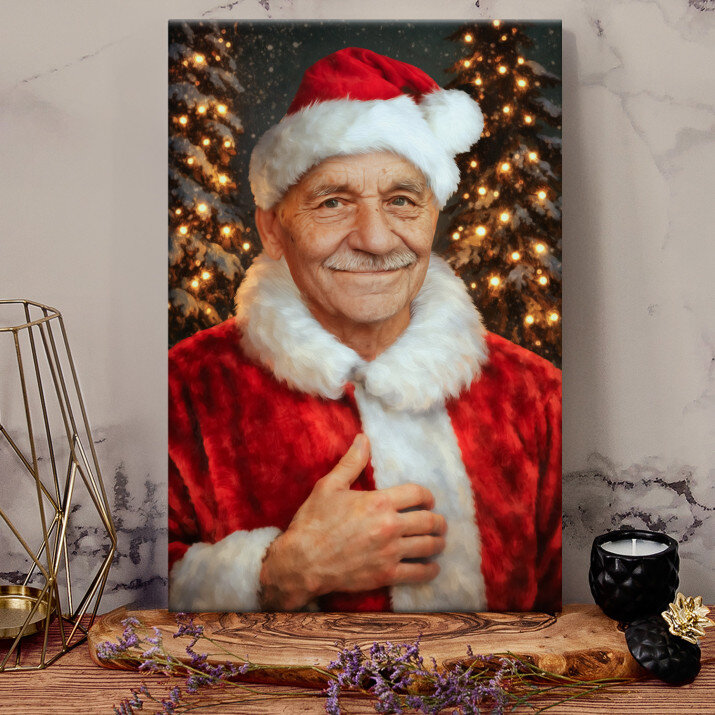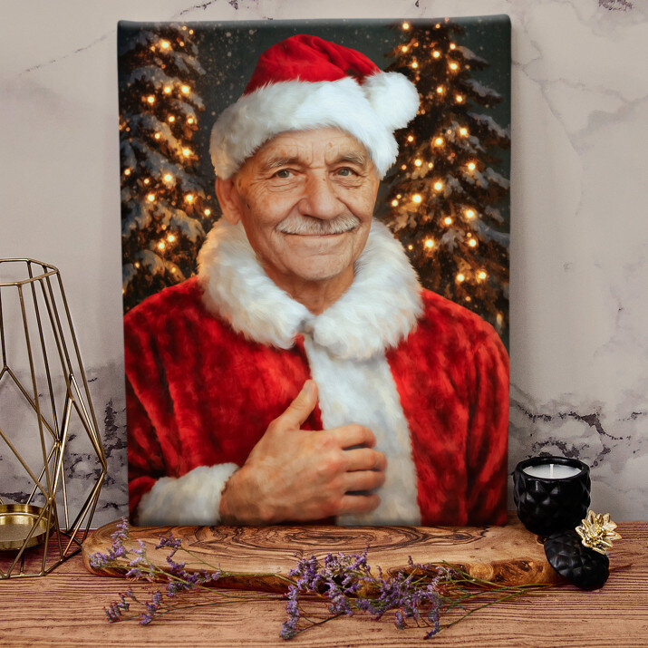 Ten obraz na płótnie z wizerunkiem Mikołaja to idealna ozdoba na ścianie w okresie świątecznym. Pięknie oddaje magię Bożego Narodzenia.