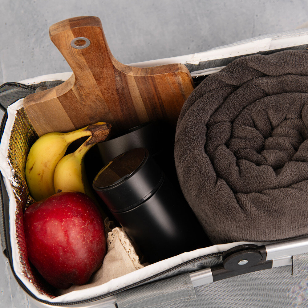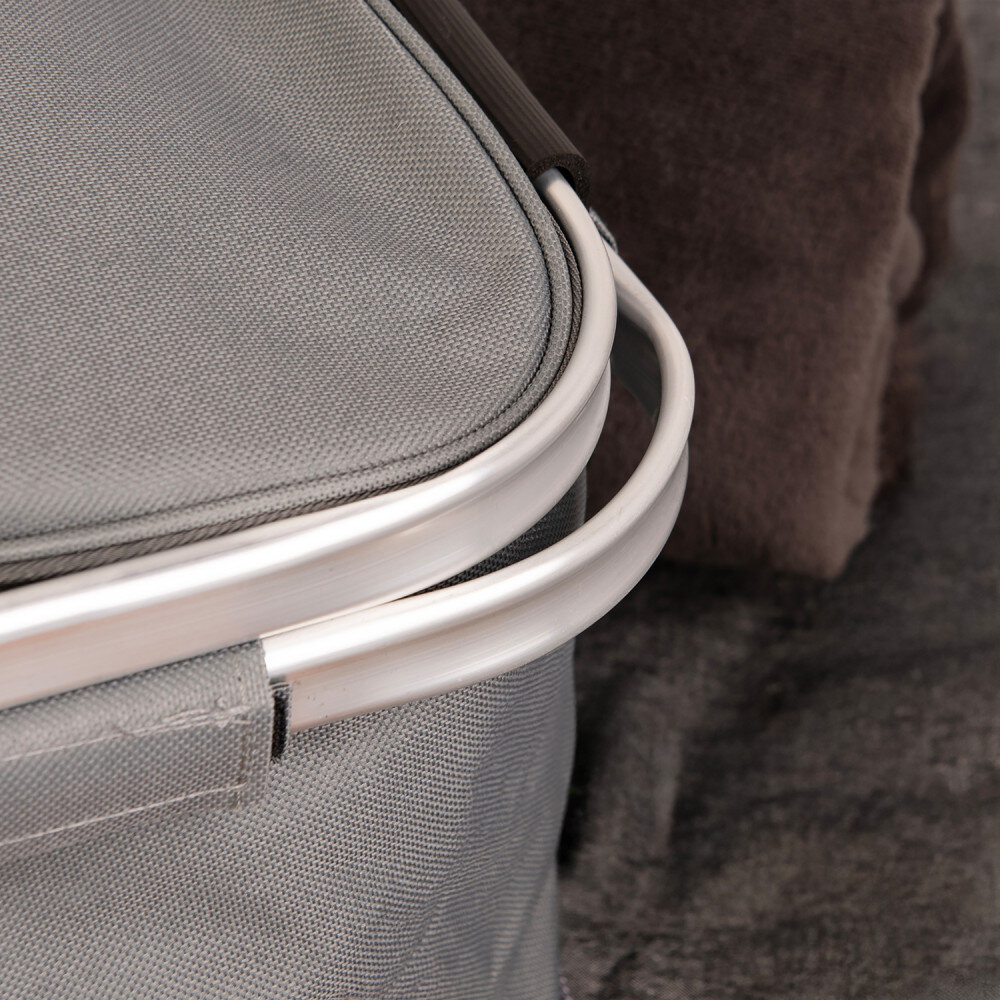 Co jest niezbędne na udany piknik w pięknym otoczeniu? Dokładnie, termiczny kosz piknikowy! Sprawdzi się idealnie zarówno na wyjeździe, jak i w parku, ale i na zwykłe codzienne zakupy. Kosz ma pojemność 24l, z zewnątrz pokryty woodoodpornym poliestrem, a wewnątrz pianką/folią aluminium (materiał termoizolacyjny). Kosz piknikowy jest składany, więc jest łatwy w przechowywaniu, ponieważ zajmuje mało miejsca, składana jest również rączka. Stelaż wykonany z aluminium. Kosz jest zamykany na 2 stronny zamek błyskawiczny.