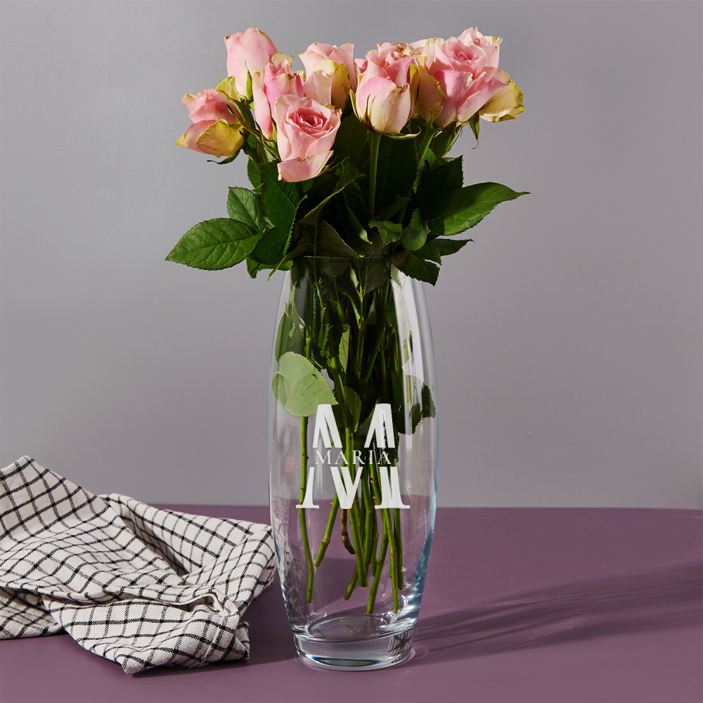 Solidnie wykonany, stabilny i elegancki wazon z grubego, przezroczystego szkła. Prosty, geometryczny kształt sprawia, że produkt wpasuje się w każde wnętrze i będzie świetnie wyglądał z Twoją kompozycją kwiatową. Grube szkło i płaska podstawa zapewniają stabilność i trwałość produktu, a personalizowany grawer dodaje wyjątkowego charakteru. Taki wazon sprawdzi się w każdym pomieszczeniu! To świetny upominek dla wszystkich miłośniczek i miłośników pięknych dodatków.Wymiary: 20 x 9 x 9 cm