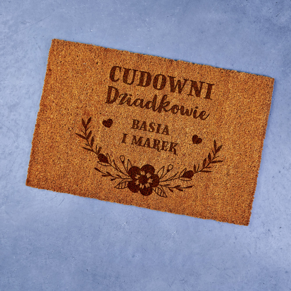Na widok takiej wycieraczki każdy gość się uśmiechnie! Produkt wyróżnia wysoka jakość wykonania, elegancki i uniwersalny wygląd oraz personalizowany grawer, dzięki któremu prezent na pewno okaże się trafiony. Materiał: 99,5% włókno kokosowe, 0,5% polietylen oraz podkładka z naturalnego lateksu. Dzięki klasycznemu kształtowi i naturalnemu kolorowi wycieraczka zadowoli każdy gust i wpasuje się w przestrzeń przed domem albo mieszkaniem. Łatwo ją utrzymać w czystości - wystarczy odkurzyć lub wytrzepać. Pozycja obowiązkowa dla wszystkich miłośników pomysłowych dodatków!Długość: 60 cm