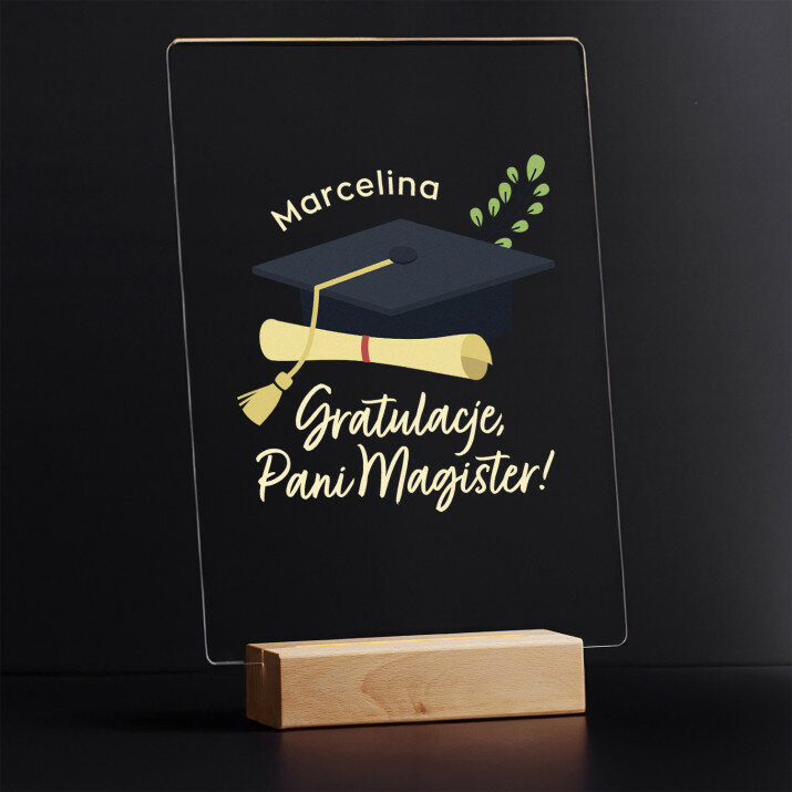 Wyjątkowa pamiątka, która zachwyci obdarowaną osobę! Wydruk na bezbarwnym szkle akrylowym (pleksiglas) o grubości 2 mm to upominek na lata. Materiał wyróżnia się doskonałą jakością powierzchni i sztywnością, jest odporny na uszkodzenia oraz warunki atmosferyczne.Podstawka LED wykonana jest z drewna bukowego. Temperatura barwowa 3000K zapewnia ciepłe, nastrojowe światło, dzięki któremu personalizowana pamiątka będzie wyglądać niczym najpiękniejszy skarb. Gwarantujemy, że będzie to świetna niespodzianka dla Twoich bliskich!