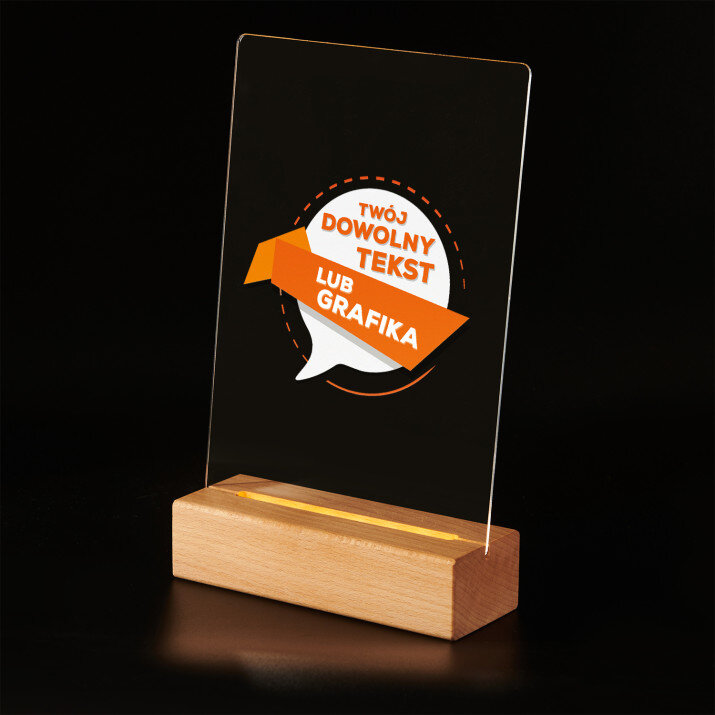 Wydruk na szkle akrylowym A4 z podstawką drewnianą LED