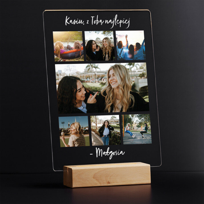 Wyjątkowa pamiątka, która zachwyci obdarowaną osobę! Wydruk na bezbarwnym szkle akrylowym (pleksiglas) o grubości 2 mm to upominek na lata. Materiał wyróżnia się doskonałą jakością powierzchni i sztywnością, jest odporny na uszkodzenia oraz warunki atmosferyczne.Podstawka LED wykonana jest z drewna bukowego. Temperatura barwowa 3000K zapewnia ciepłe, nastrojowe światło, dzięki któremu personalizowana pamiątka będzie wyglądać niczym najpiękniejszy skarb. Gwarantujemy, że będzie to świetna niespodzianka dla Twoich bliskich!