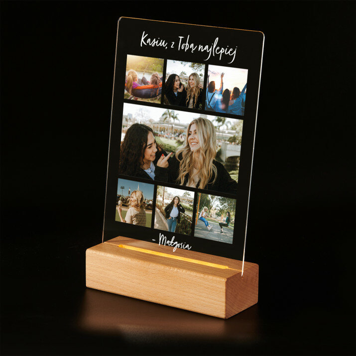 Wydruk na szkle akrylowym z podstawką drewnianą LED.