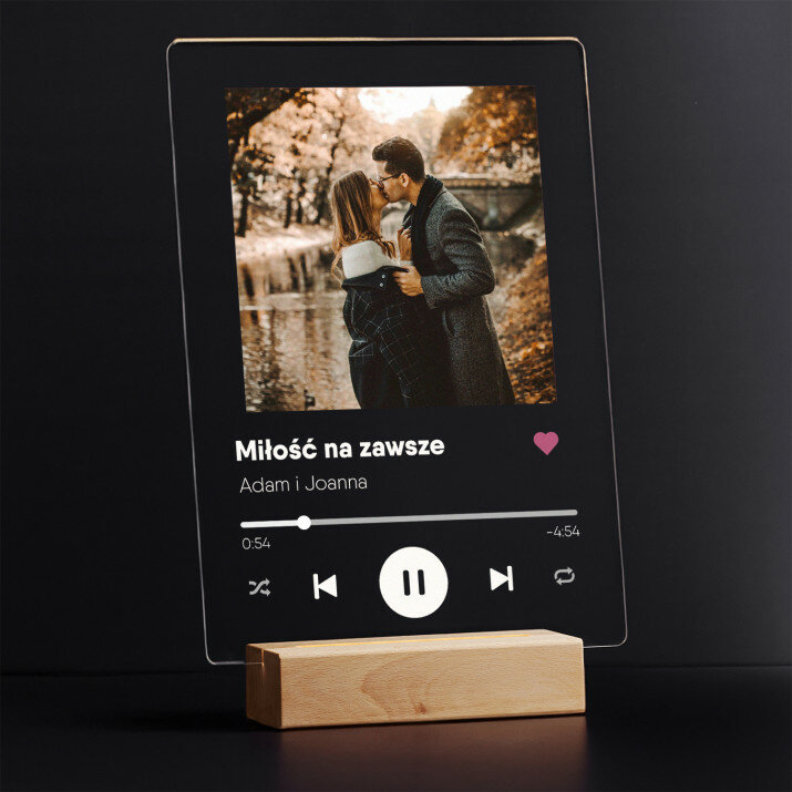 Wyjątkowa pamiątka, która zachwyci obdarowaną osobę! Wydruk na bezbarwnym szkle akrylowym (pleksiglas) o grubości 2 mm to upominek na lata. Materiał wyróżnia się doskonałą jakością powierzchni i sztywnością, jest odporny na uszkodzenia oraz warunki atmosferyczne.Podstawka LED wykonana jest z drewna bukowego. Temperatura barwowa 3000K zapewnia ciepłe, nastrojowe światło, dzięki któremu personalizowana pamiątka będzie wyglądać niczym najpiękniejszy skarb. Gwarantujemy, że będzie to świetna niespodzianka dla Twoich bliskich!