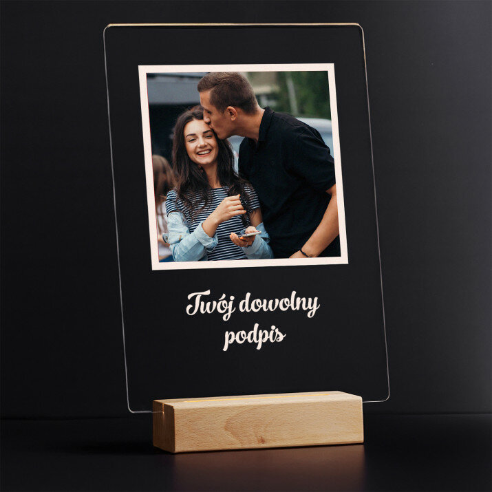 Wydruk na szkle akrylowym A4 z podstawką drewnianą LED
