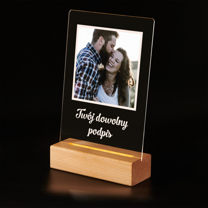 Wyjątkowa pamiątka, która zachwyci obdarowaną osobę! Wydruk na bezbarwnym szkle akrylowym (pleksiglas) o grubości 3 mm to upominek na lata. Materiał wyróżnia się doskonałą jakością powierzchni i sztywnością, jest odporny na uszkodzenia oraz warunki atmosferyczne.Podstawka LED wykonana jest z drewna bukowego. Temperatura barwowa 3000K zapewnia ciepłe, nastrojowe światło, dzięki któremu personalizowana pamiątka będzie wyglądać niczym najpiękniejszy skarb. Gwarantujemy, że będzie to świetna niespodzianka dla Twoich bliskich!