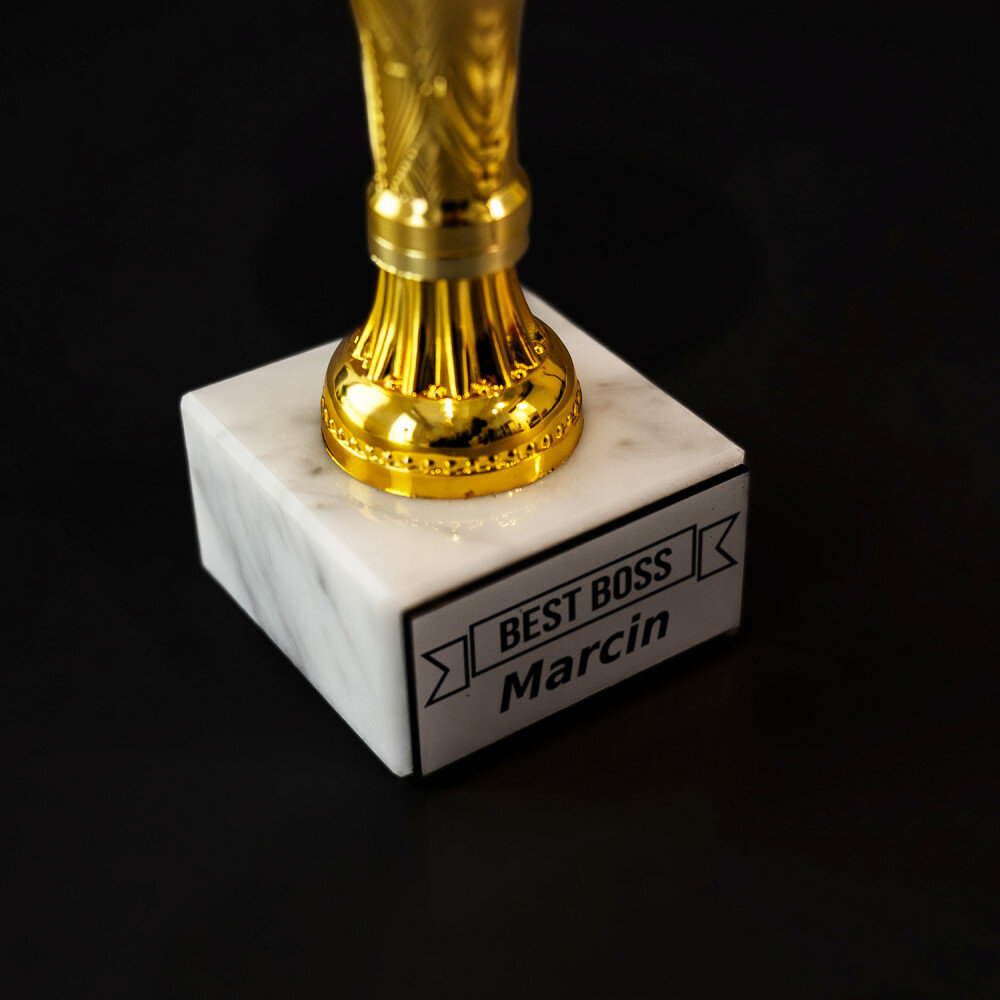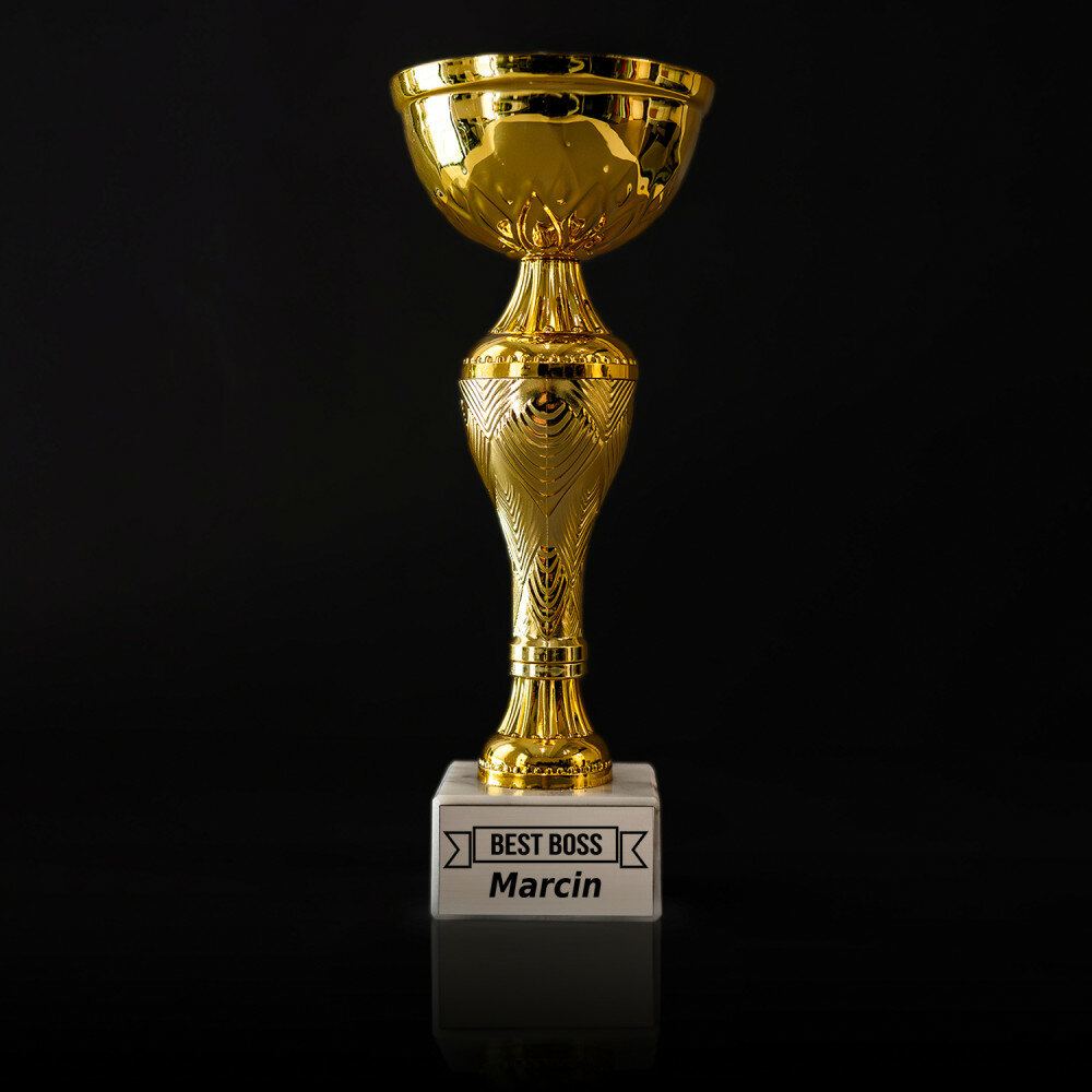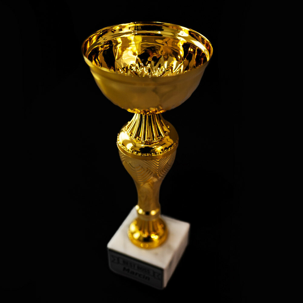Wyjątkowy złoty puchar wykonany z dbałością o każdy detal, stworzony z myślą o wyjątkowych okazjach i wyjątkowych ludziach. Dzięki precyzyjnemu grawerowi wykonanemu techniką laserową, możesz spersonalizować puchar i nadać mu unikalny charakter, odpowiadający konkretnemu wydarzeniu. To idealny sposób na uhonorowanie osiągnięć, docenienie zaangażowania, czy uczczenie ważnych dat i wydarzeń. Puchar z pewnością stanie się wyjątkową pamiątką, która na zawsze zatrzyma w pamięci te wyjątkowe chwile. Niezależnie od okazji puchar sprawi, że obdarowana osoba poczuje się wyjątkowo doceniona.Informacje dodatkowe: